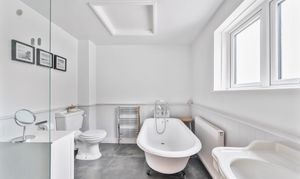 There are also two recently installed bathrooms: a spacious family bathroom that exudes period charm with its roll-top bath and separate shower, and a second shower room finished in a sleek, contemporary style.