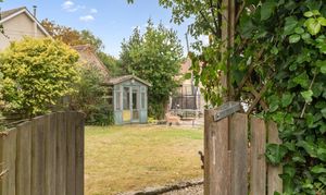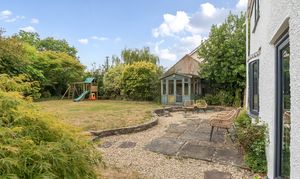The walled cottage garden is a particular highlight. South-facing and well stocked with traditional English flowers, it also includes several feature trees including an acer, a stone-paved terrace leading to the lawn, garden shed, and summer house. A side gateway provides access to the road, and there is a useful outside tap.