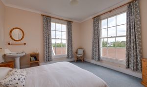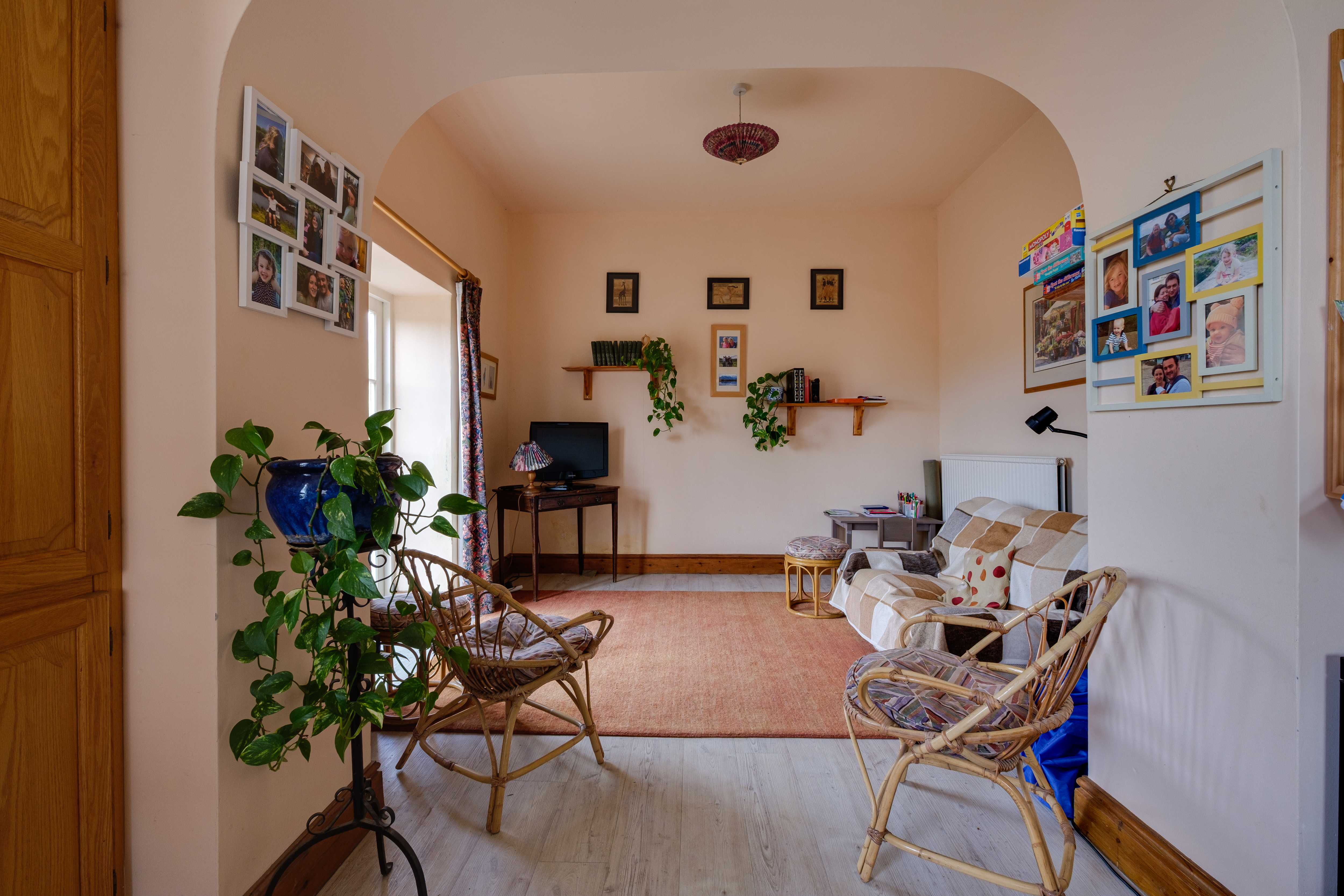 At the rear of the house is the study, where a large sash window provides glorious open views across the arable land beyond.