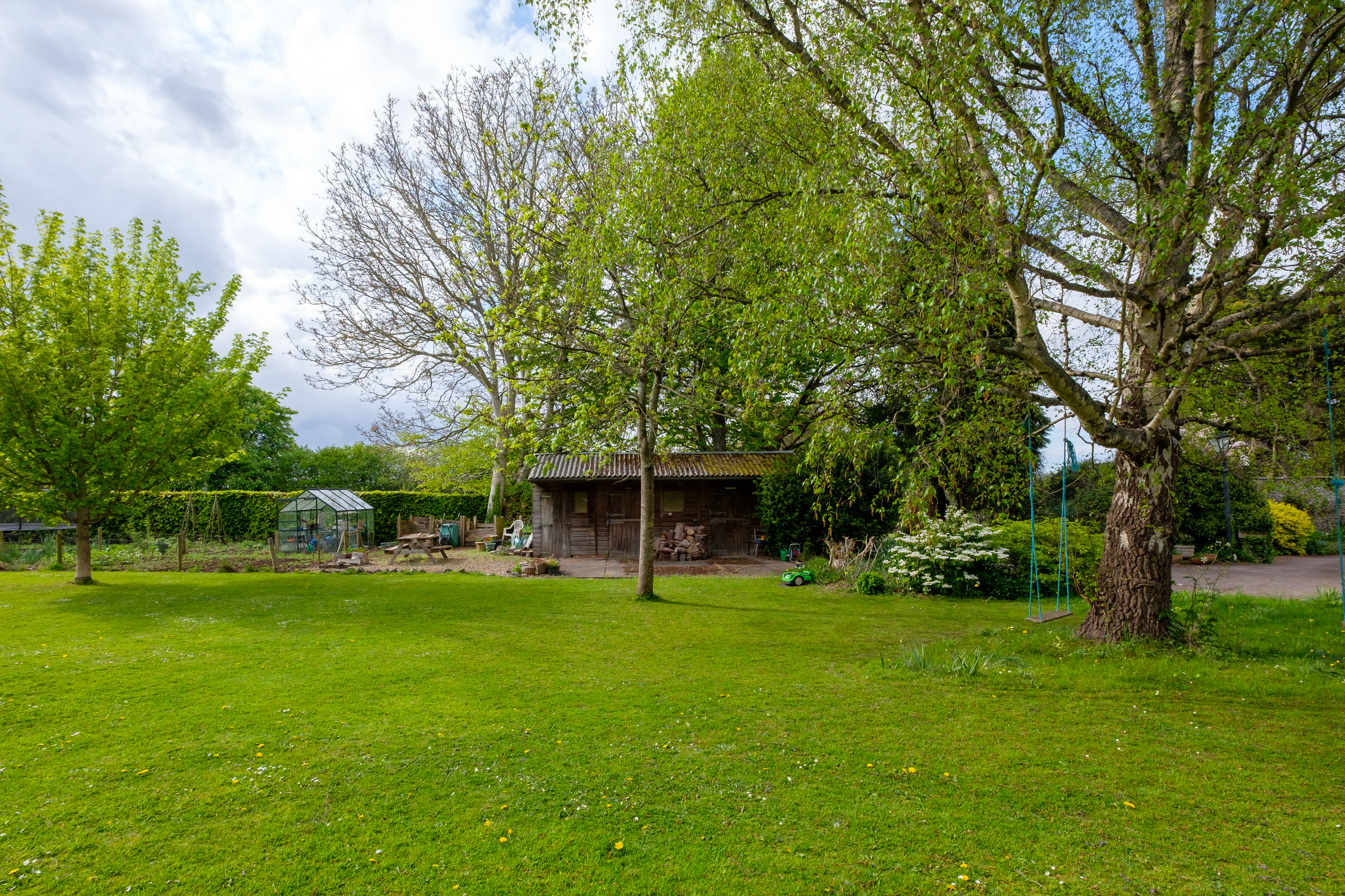 Brockley Chase benefits from three distinct garden areas. At the rear are charming courtyard gardens, while at the front, a large lawn features a stunning magnolia tree and beautiful herbaceous borders alongside an attractive stone wall. A picturesque pergola and feature pond enhance the wisteria-clad front façade. The final garden area, previously a paddock, is predominantly lawn with specimen trees such as acers, a crab apple, and silver birch. Additionally, there is a vegetable garden with an adjacent greenhouse and a coppice area ideal for outdoor adventures or building a den.
