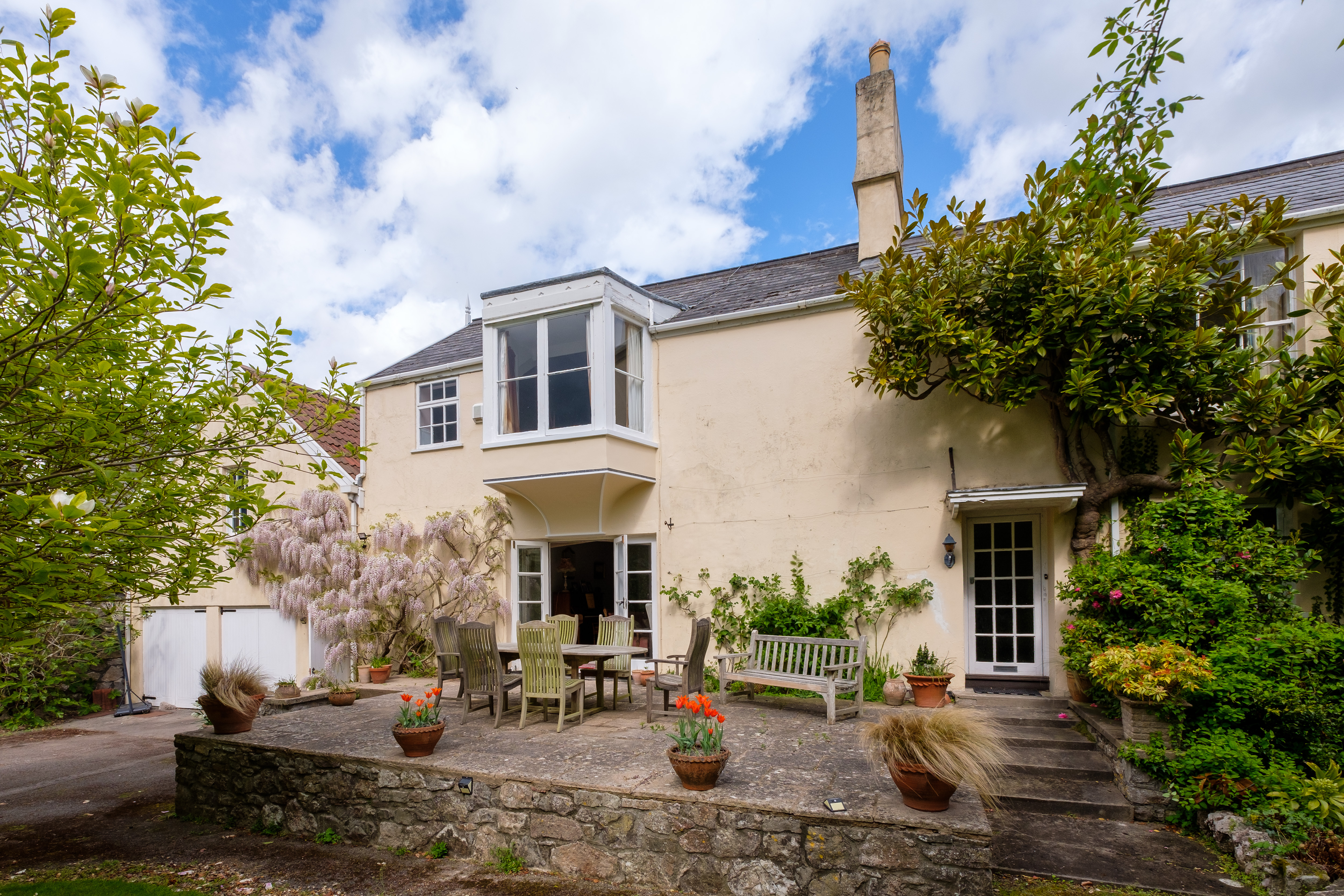 An impressive Georgian Grade II listed 6-bedroom family home set in grounds approaching an acre, featuring a double garage, ample driveway parking, and stabling. It is tucked away yet offers easy access to Bristol and beyond.