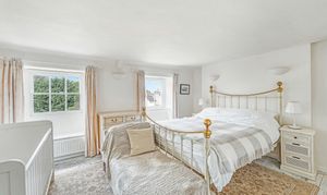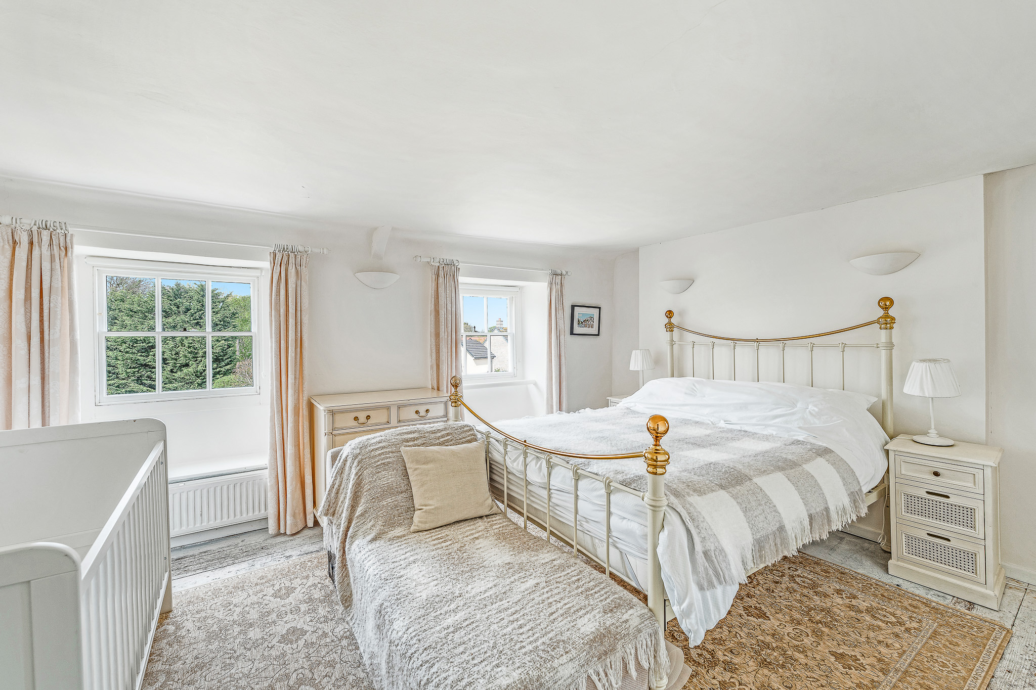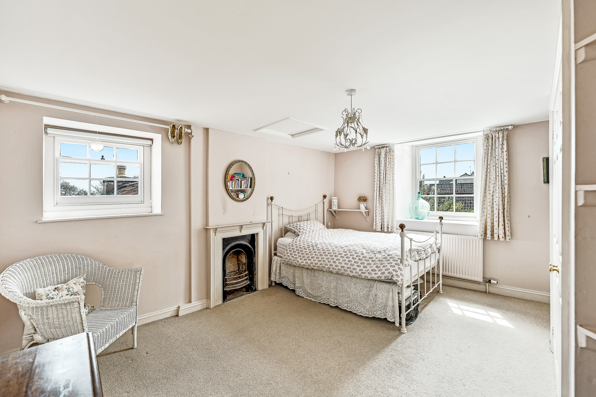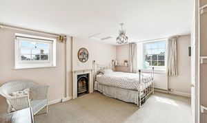 Upstairs, the first floor offers three beautifully proportioned double bedrooms. The principal bedroom enjoys elevated views over the gardens, with sash windows, deep window seats, and a luxurious en-suite bathroom featuring a walk-in shower. The remaining double bedrooms each have their own unique character and share a stylish family bathroom, fitted with a classic roll-top bath.