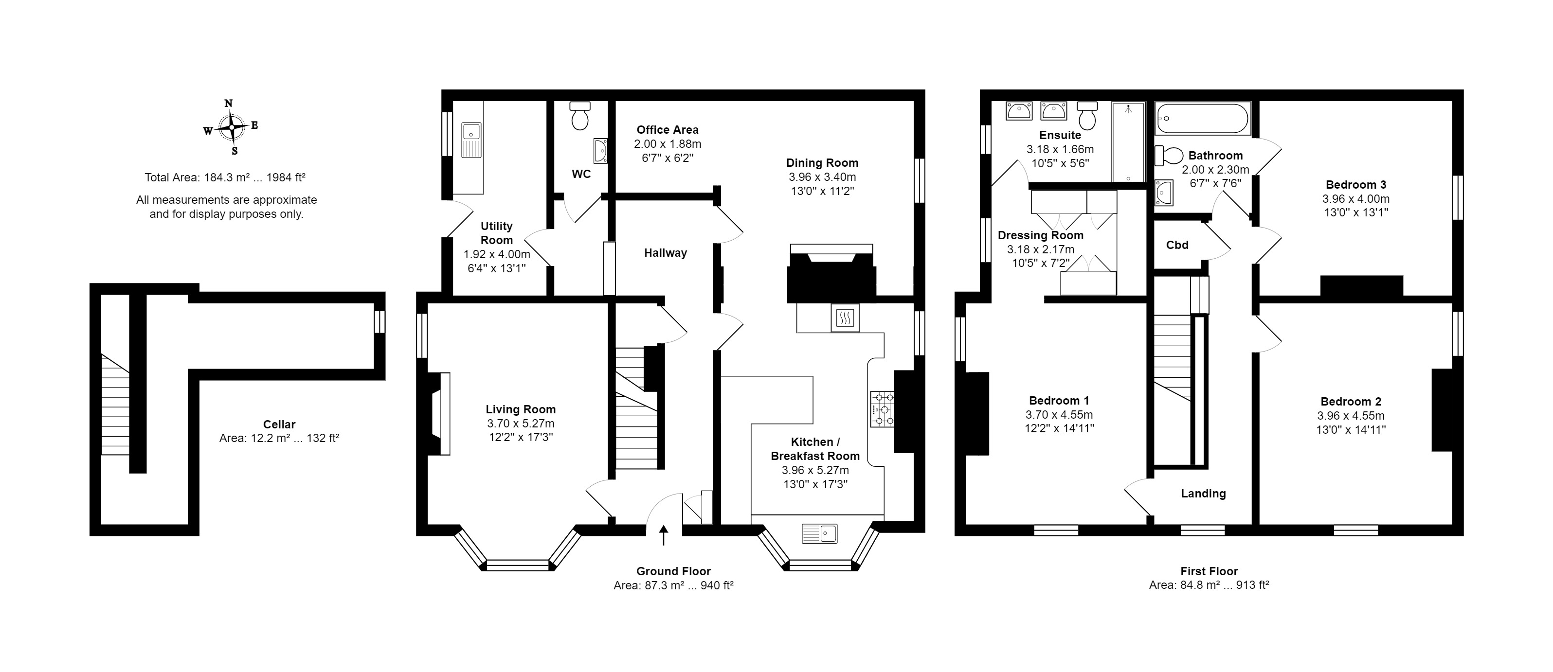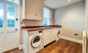 The ground floor offers a seamless flow between rooms, with a spacious lounge featuring a bay window that floods the room with natural light. The separate dining room includes a designated home office area, providing the perfect environment for working or studying from home. The stunning kitchen is a true centrepiece of this property, complete with modern integrated appliances and a breakfast bar seating area, ideal for casual dining or a quick morning coffee. No family home would be complete without a useful utility room and this property doesn't disappoint, with access out to the garden at the side and a guest WC this room is both stylish and practical in equal measures. Stairs lead down to a practical cellar perfect for storage. Accessed by a beautiful staircase the first floor boasts a principal suite which is accompanied by a practical walk-through dressing area and an en suite shower room with double wash basins, while the two additional bedrooms provide ample space for family members or guests. A well-designed Jack and Jill house bathroom completes the first floor.