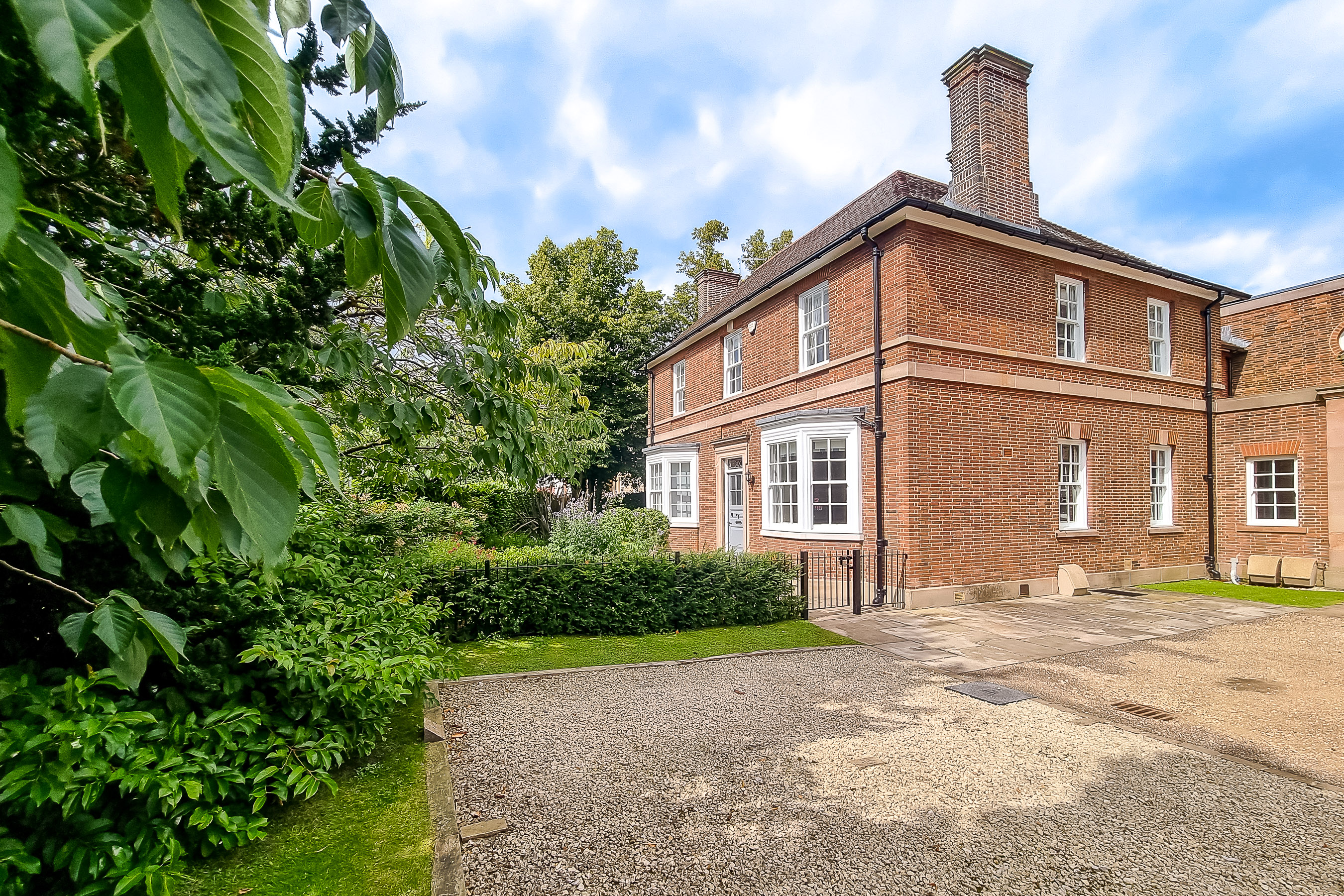 Outside, the well-maintained gardens to the front and side of the property offer an oasis in which to relax and unwind. The carefully landscaped grounds provide a picturesque backdrop for entertaining or al fresco dining. Two secure off-street parking spaces ensure convenient and hassle-free parking for the residents and their guests.
