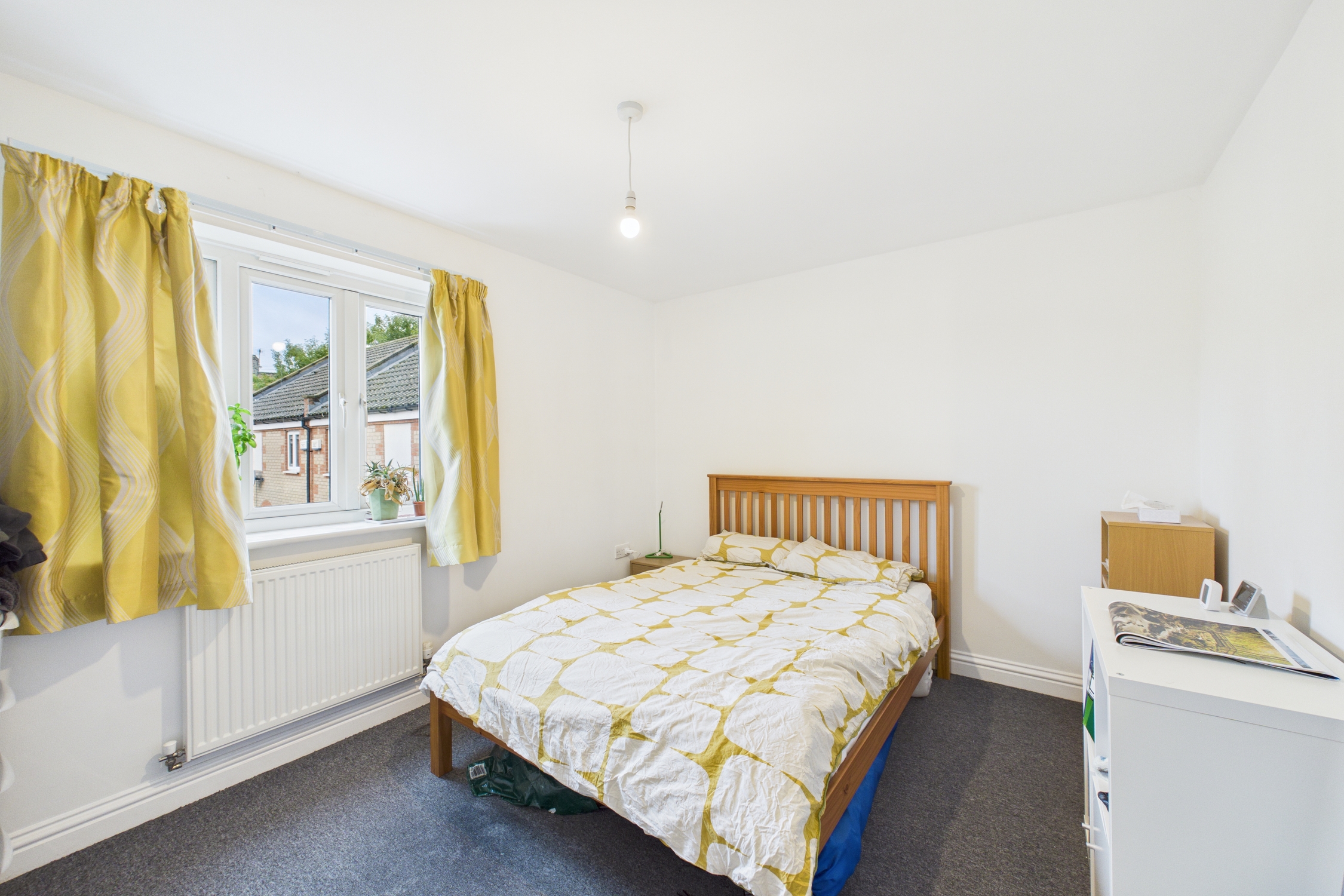 Window to rear, with radiator, and carpet flooring.