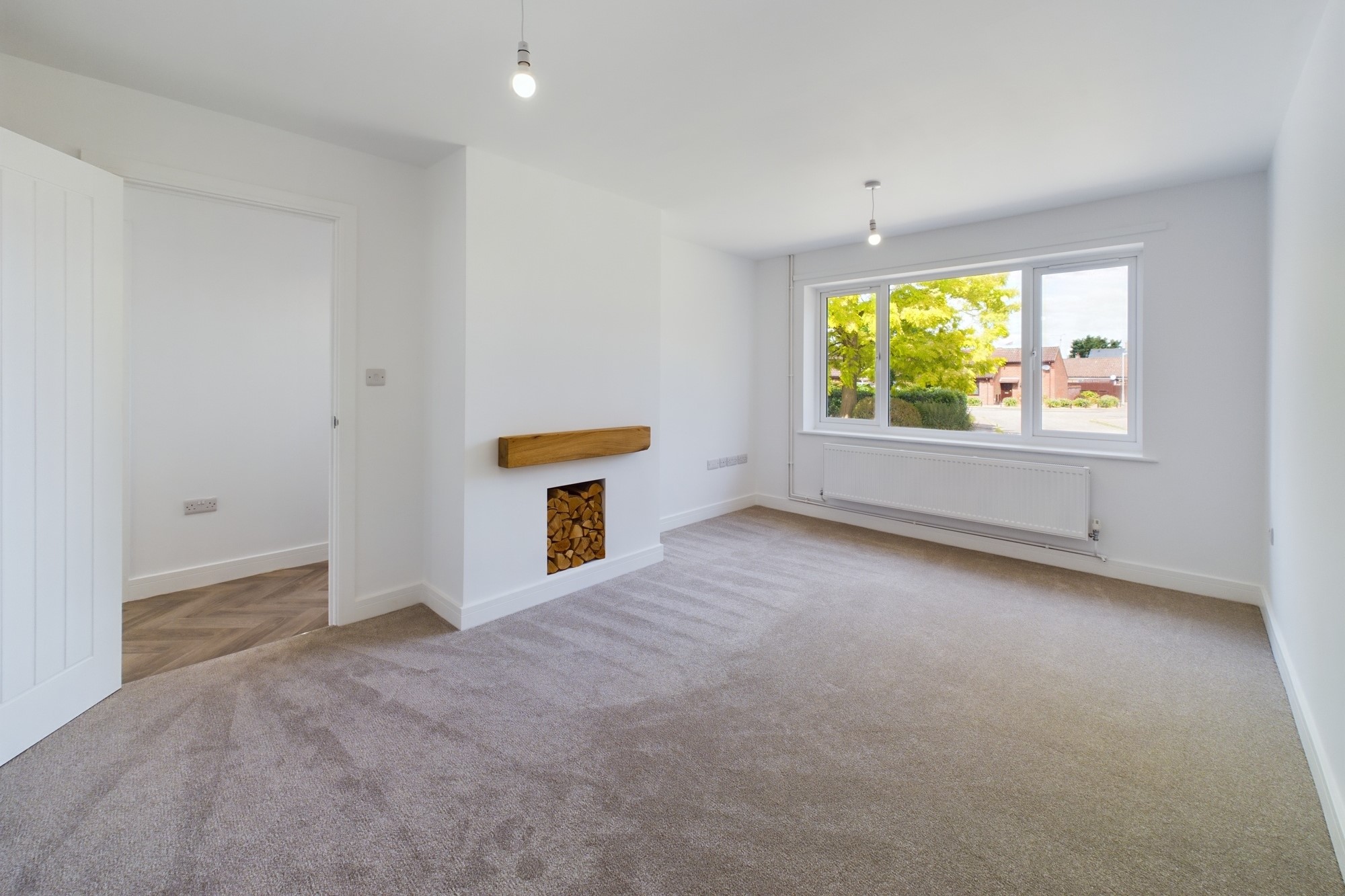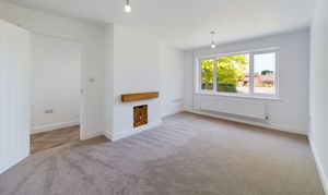 Double glazed window to the front, feature fireplace with wooden mantle, radiator, carpet flooring.