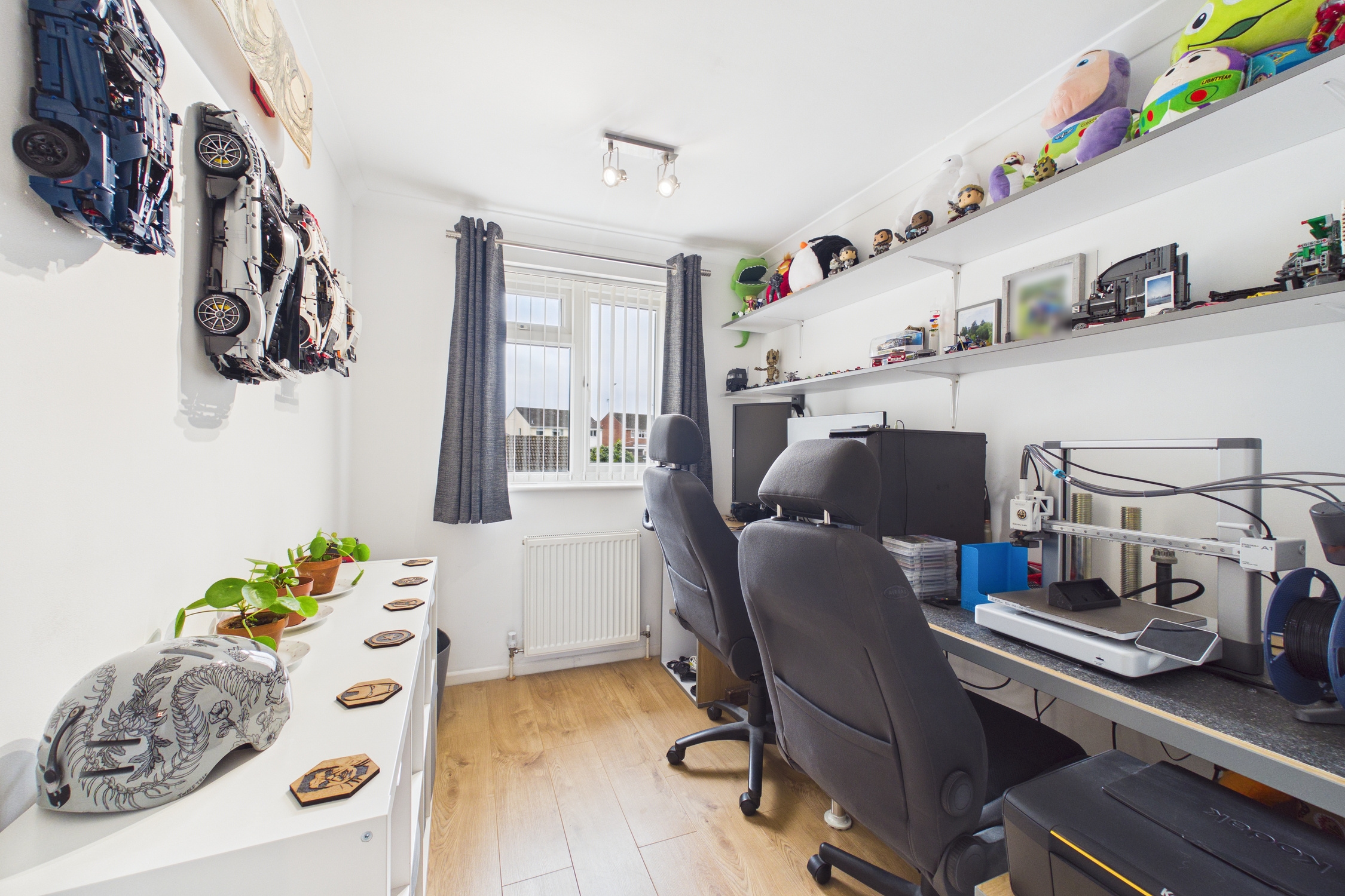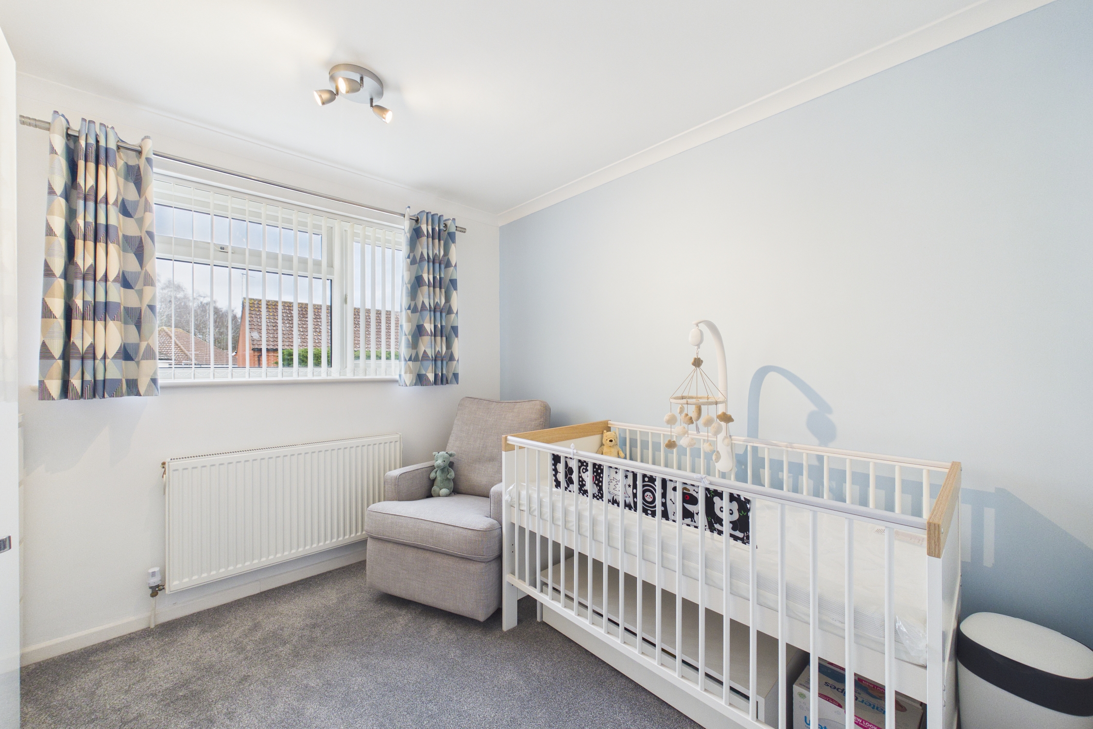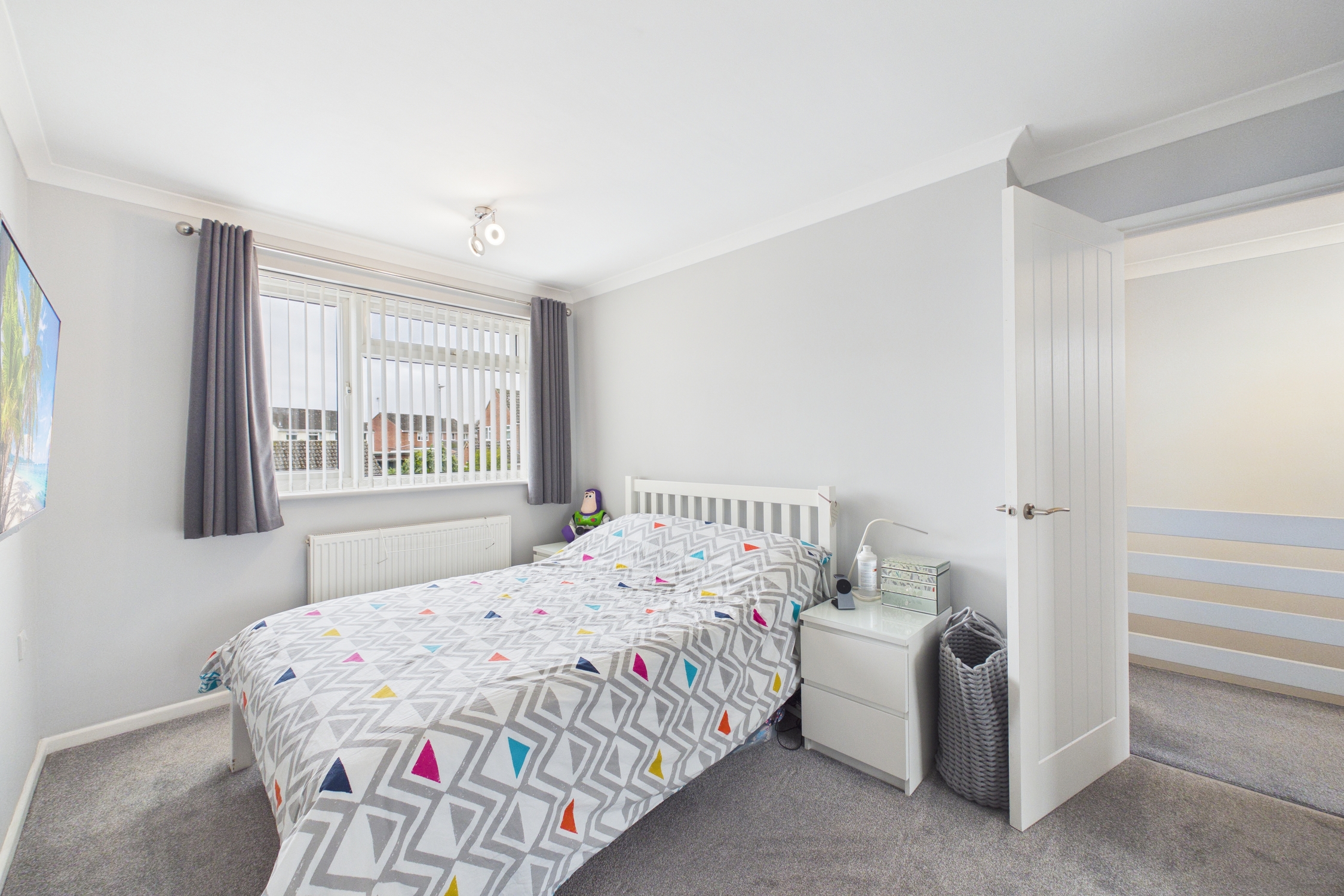 Doors to all bedrooms, shower room and airing cupboard, carpet flooring, loft hatch and window to side.