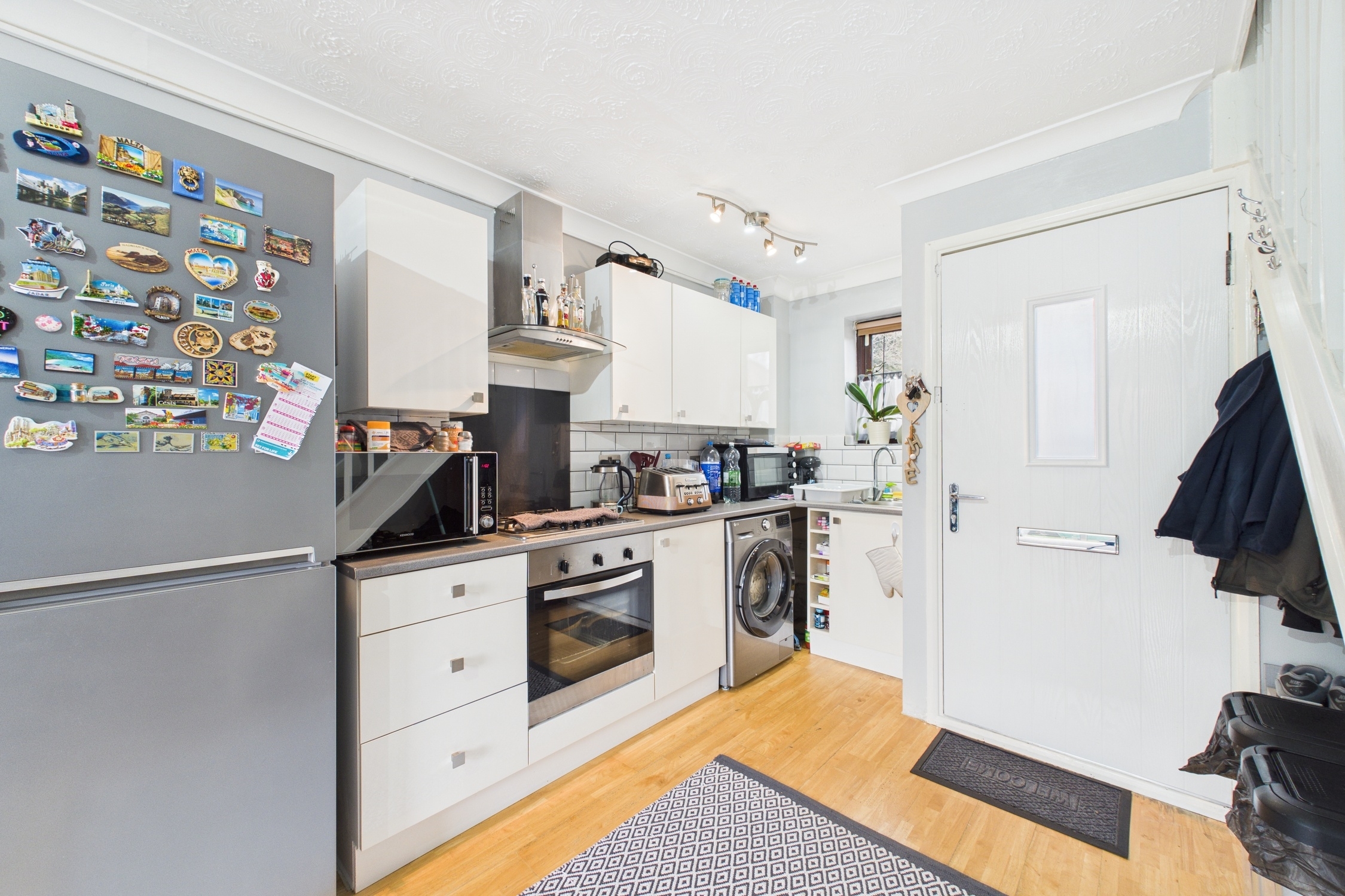 Window to front, wall & base units with worktop over, inset 1 bowl sink unit with mixer tap over, tiled splash backs and laminate flooring. Built in single oven, gas hob with cooker hood over. Space for washing machine and fridge freezer and open to lounge.