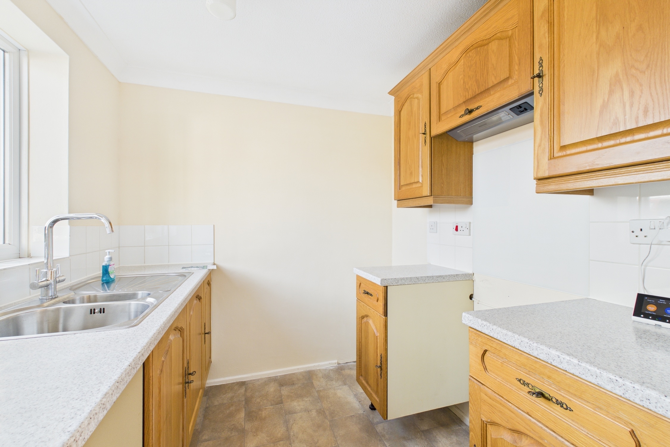 With a range of matching wall and base units with work surface over, stainless steel 1.5 bowl sink unit with mixer tap over, space for cooker, washing machine and fridge freezer. Extractor hood over cooker space, double glazed window to the front
