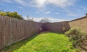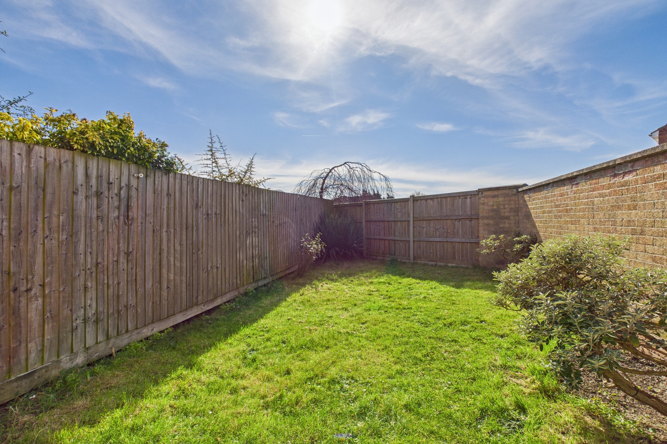 Fully enclosed rear garden mainly laid to lawn, with gate for side access