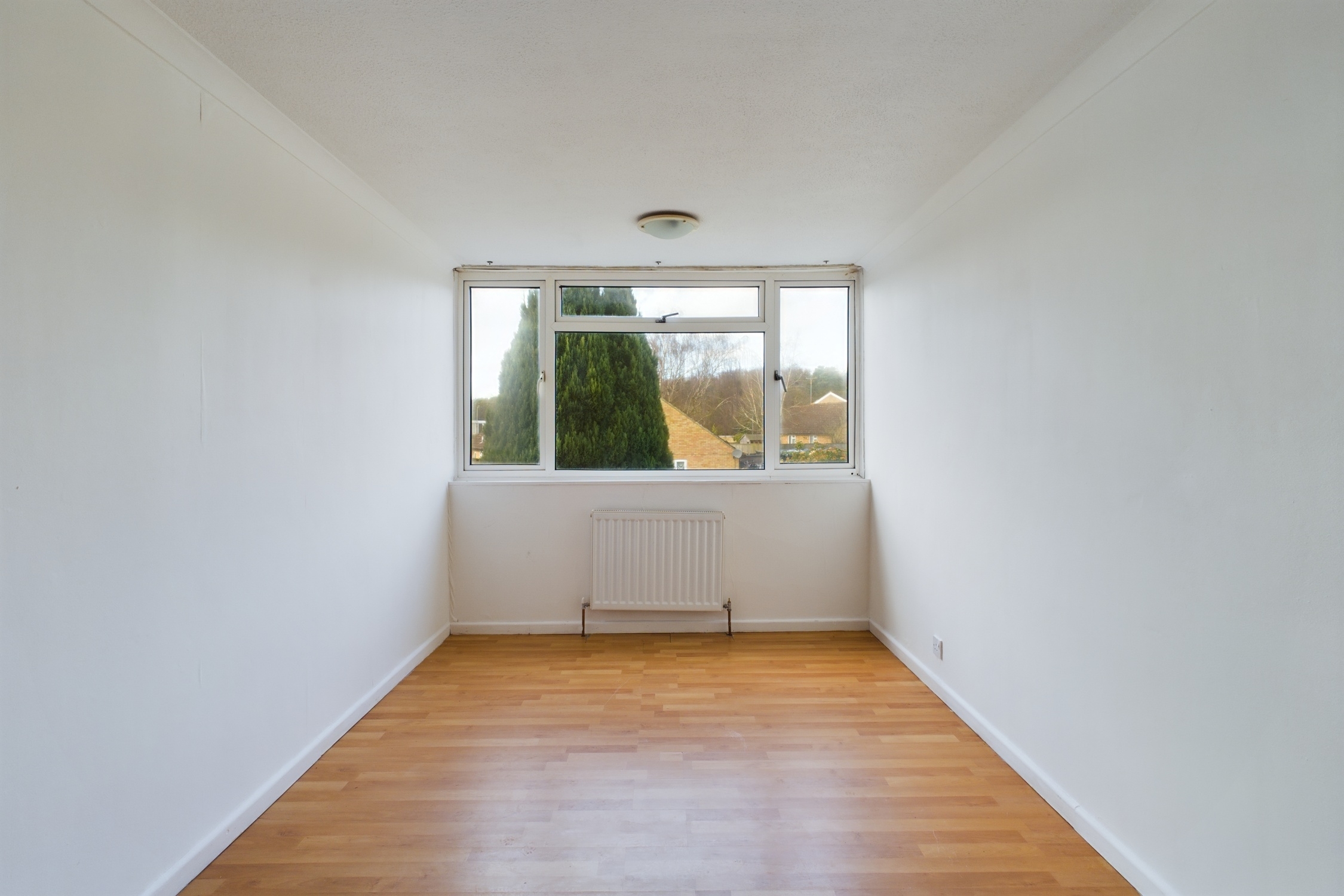 Window with to rear, radiator, wood effect laminate flooring