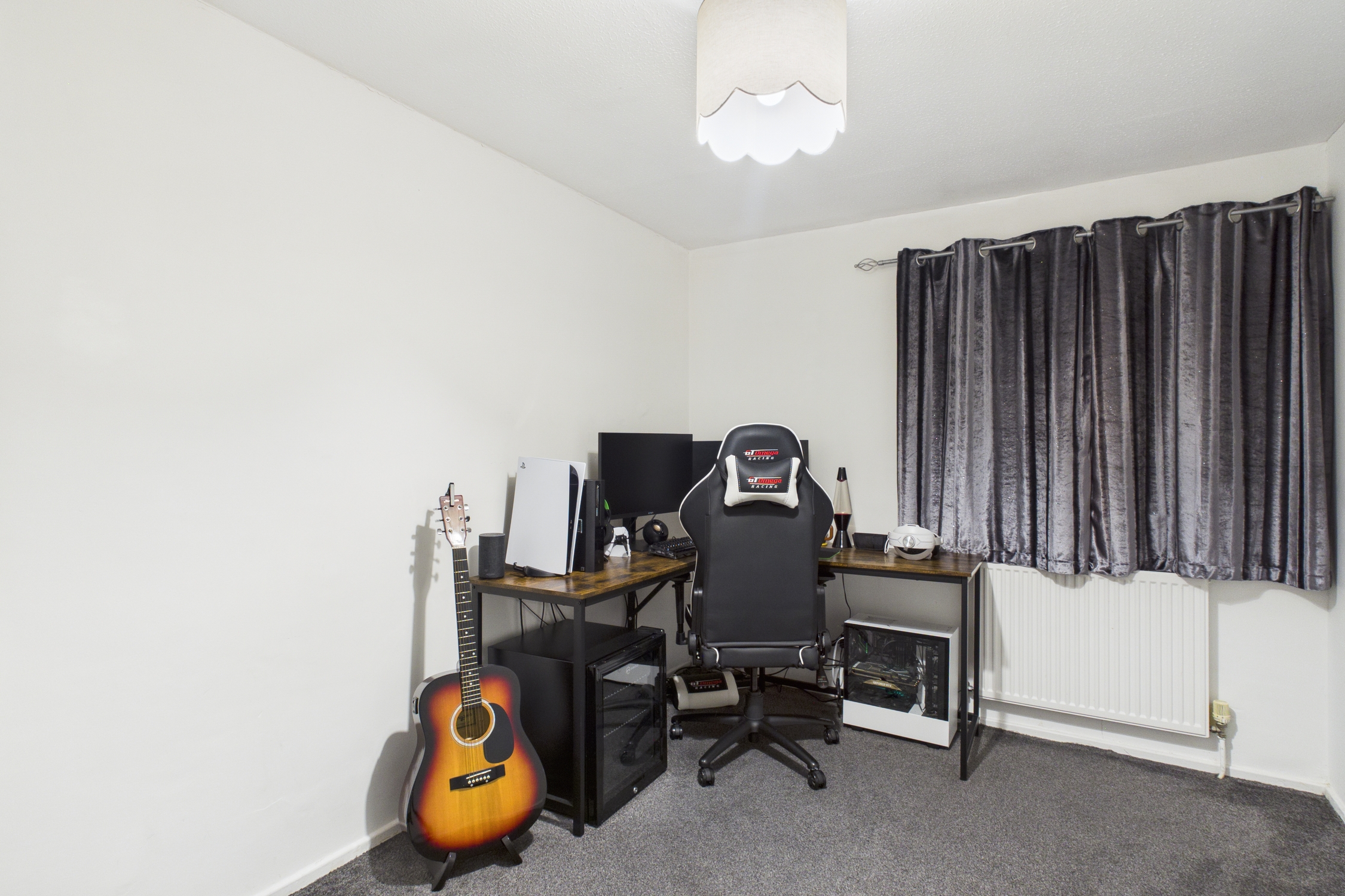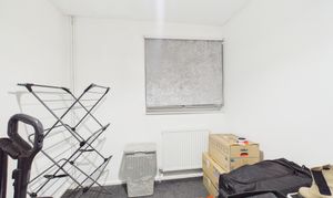 Double glazed window to front, feature fireplace, carpet flooring, radiator