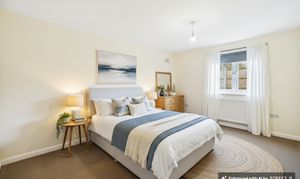 Spacious bedroom with double glazed window to rear, radiator, carpet flooring.