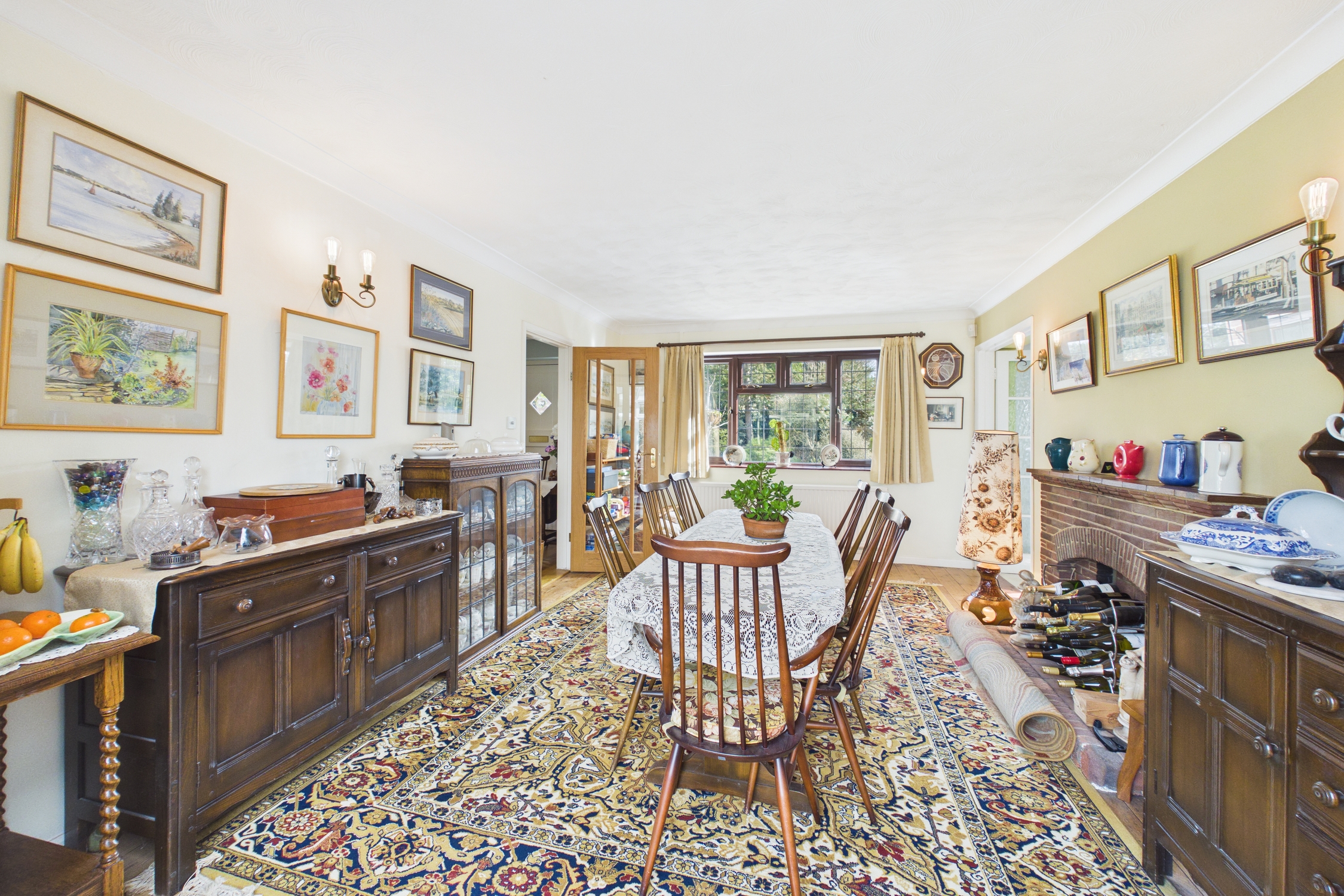 Window to front, feature fire surround, with radiator, wooden flooring, and French doors to lounge and conservatory.