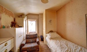 Upstairs, the property features three generously sized bedrooms, each offering a blank canvas for personalisation. The master bedroom, located at the front, is bright and airy, benefiting from large windows. A family bathroom completes the first floor, offering potential for modern upgrades to meet contemporary standards.