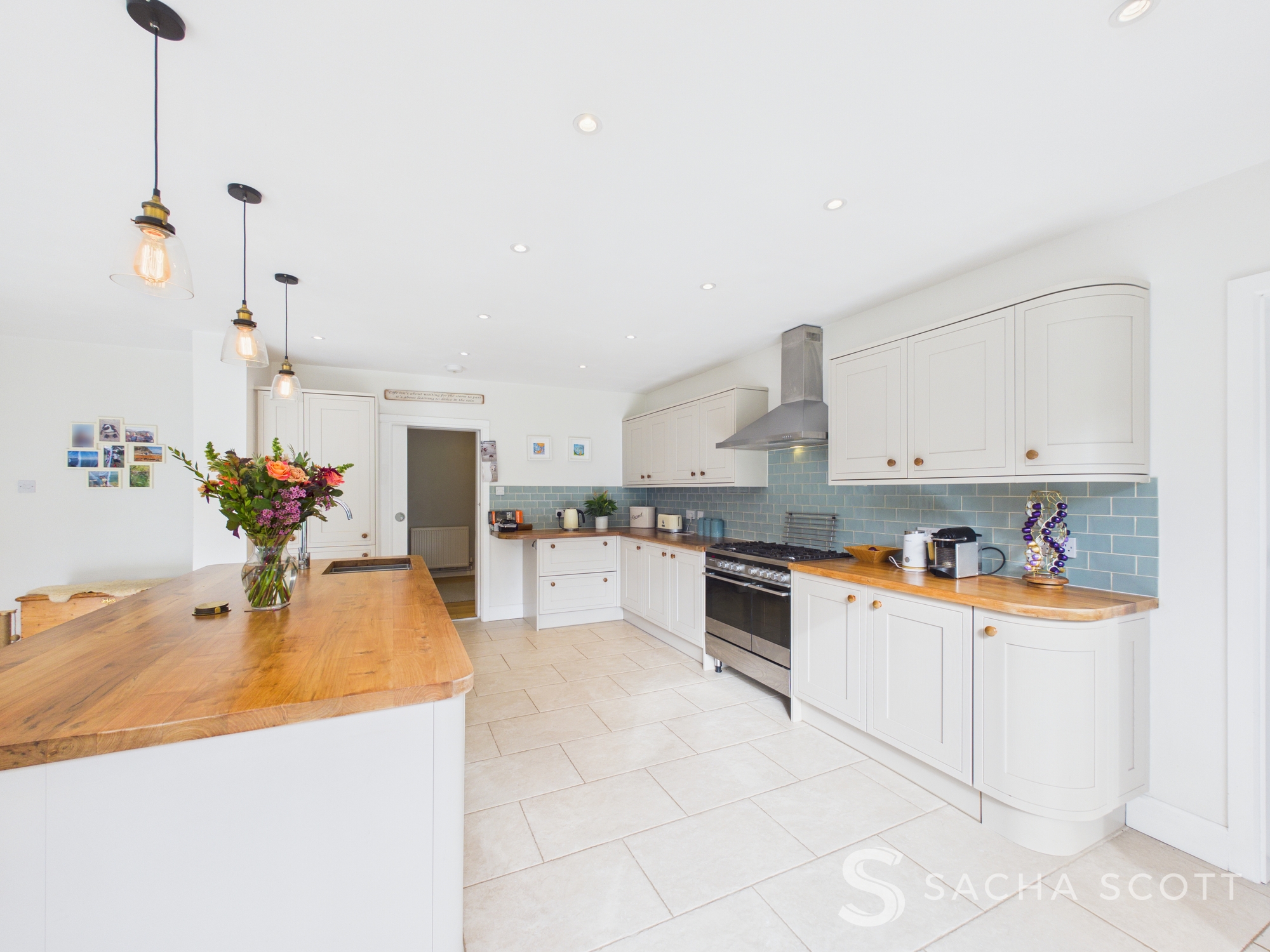 This attractive family home features a welcoming hallway leading to two bright reception rooms, a huge kitchen/diner extension overlooking the garden, a separate utility, and a home office and WC. Upstairs offers four bright double bedrooms and two bathrooms. The beautiful home enjoyed a full refurbishment and extension circa ten years ago and benefits from a new roof to the extension as well as good general maintenance throughout. To the rear and side there is a generous corner plot garden that enjoys a sunny south-west aspect and to the front and side a double garage and ample driveway parking.