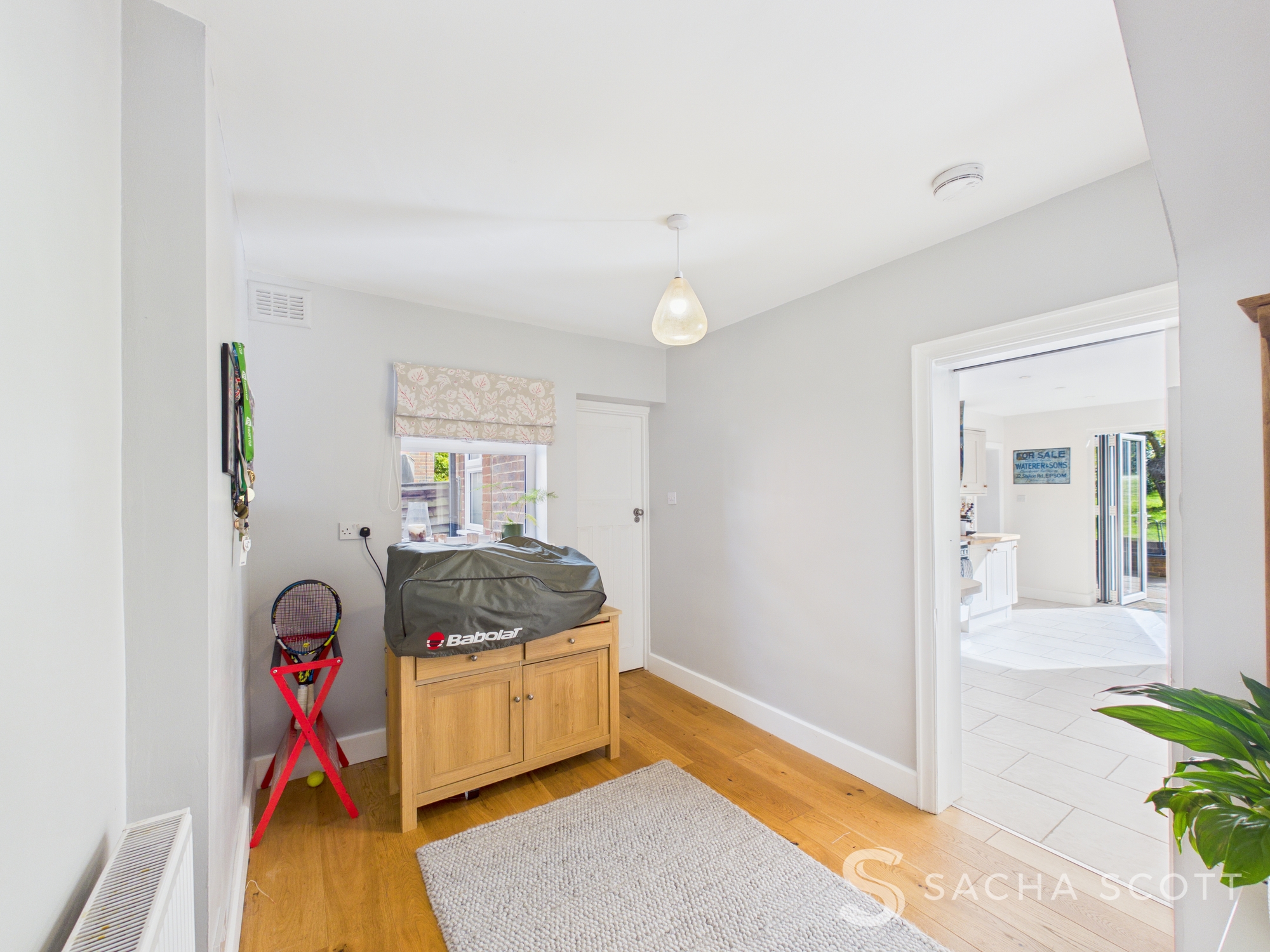 Offering access to the fabulous kitchen/diner extension to the rear, this family room benefits from warm wooden flooring, neutral decor and dual aspect windows to the side and front (bay). Benefiting from a characterful brick built fireplace (decoration only), this lovely room perfectly blends the character of this family home, with the modern additions the owners have made to it.