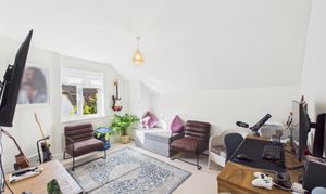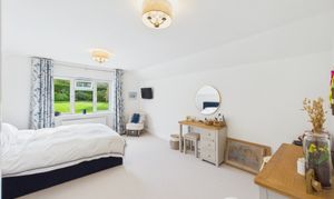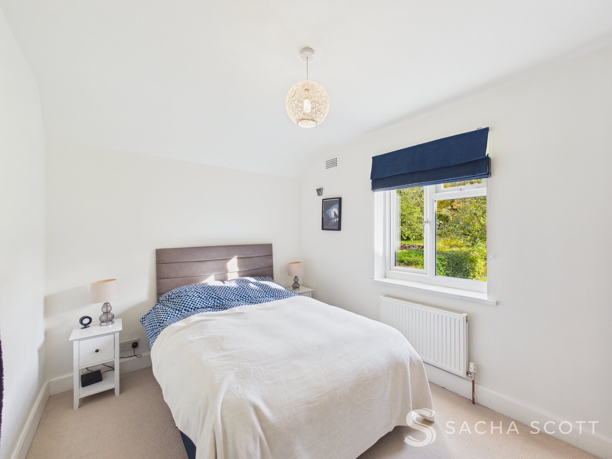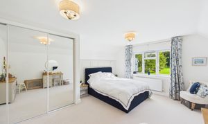 Offering views over the substantial rear garden, this generous primary bedroom offers fitted wardrobes and ample space for additional bedroom furniture. Bright and neutrally presented throughout, this lovely room manages to feel snug and spacious at the same time.