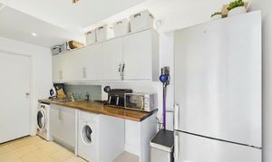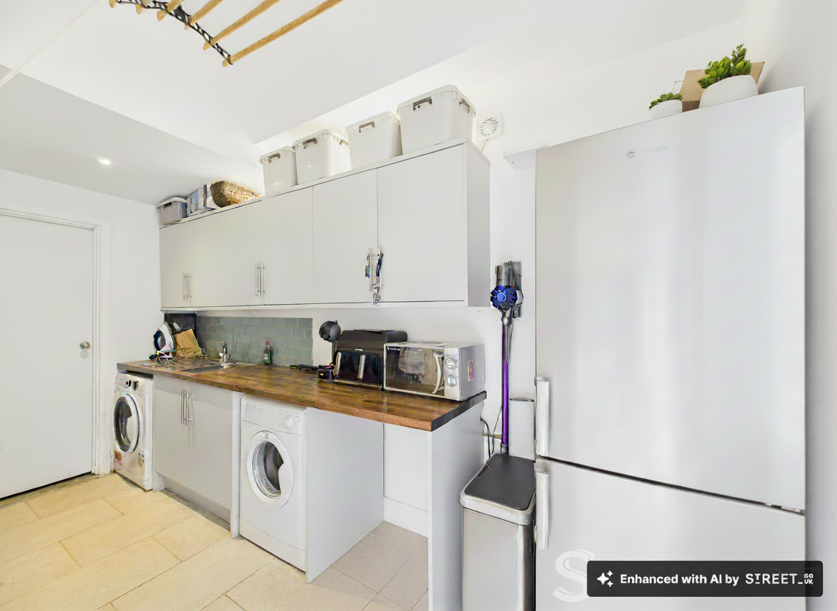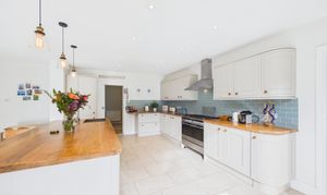 Discretely located off of the end of the kitchen, this generous utility offers access to the boiler room as well as a sink area with wall and base storage and room for a washing machine, tumble dryer and fridge freezer.