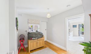 Located at the rear of this beautiful family home, the study/playroom was once upon a time the kitchen to the original property. Now benefiting from modern decor and warm wood flooring, this is a good space for a home office, treatment room or play area/store for the little ones.