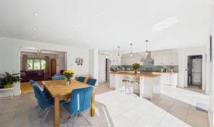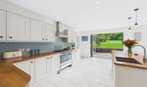Extended approx 10 years ago, this fabulous open plan kitchen/diner is presented in mint condition throughout and offers ample space for a large dining set and/or separate lounge and dining areas. The vast kitchen offers plenty of storage space, integrated appliances and ample work surface space. Accessible via the living room and study/playroom, this is a stunning family hub that offers access to the impressive rear garden via bi-fold doors.