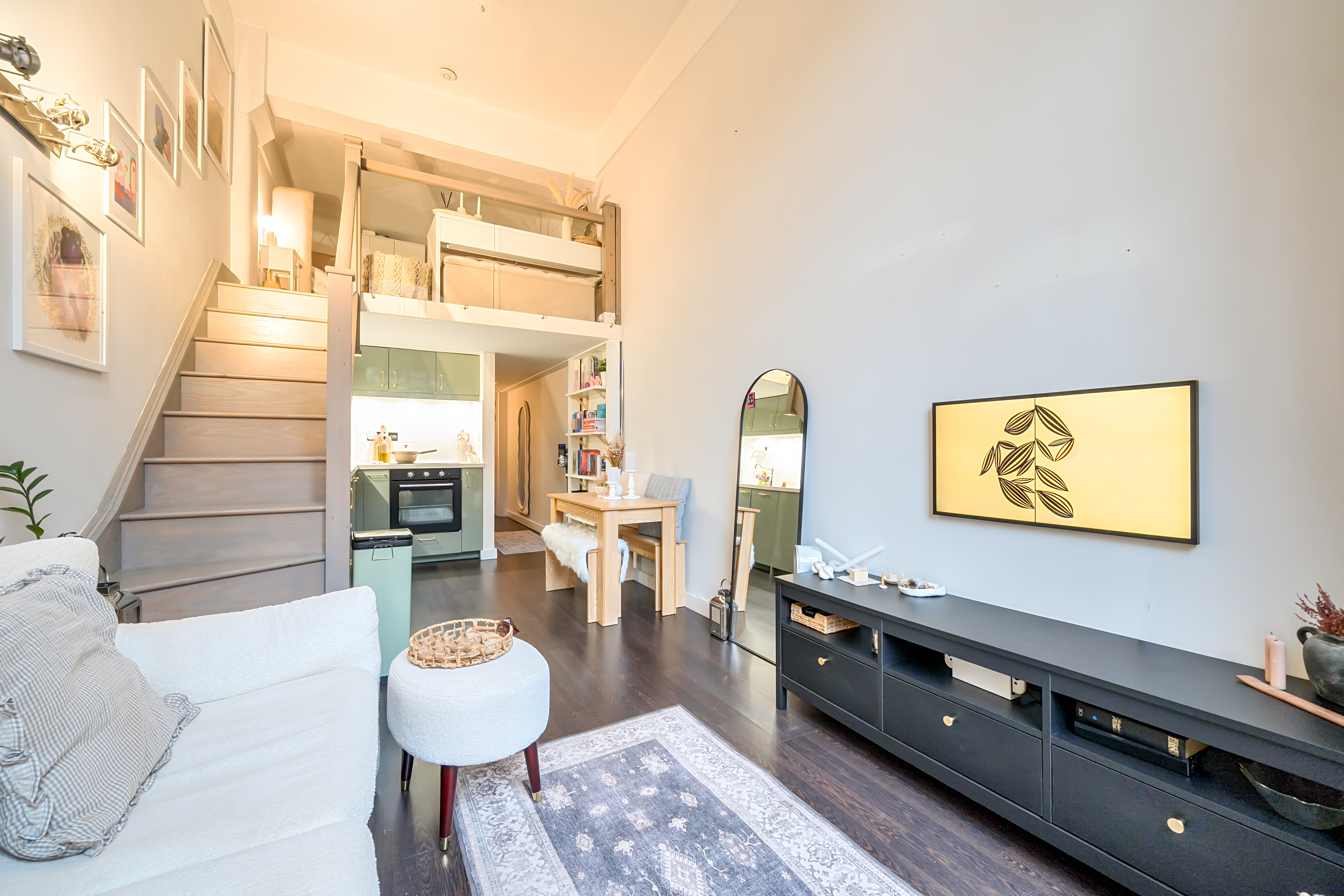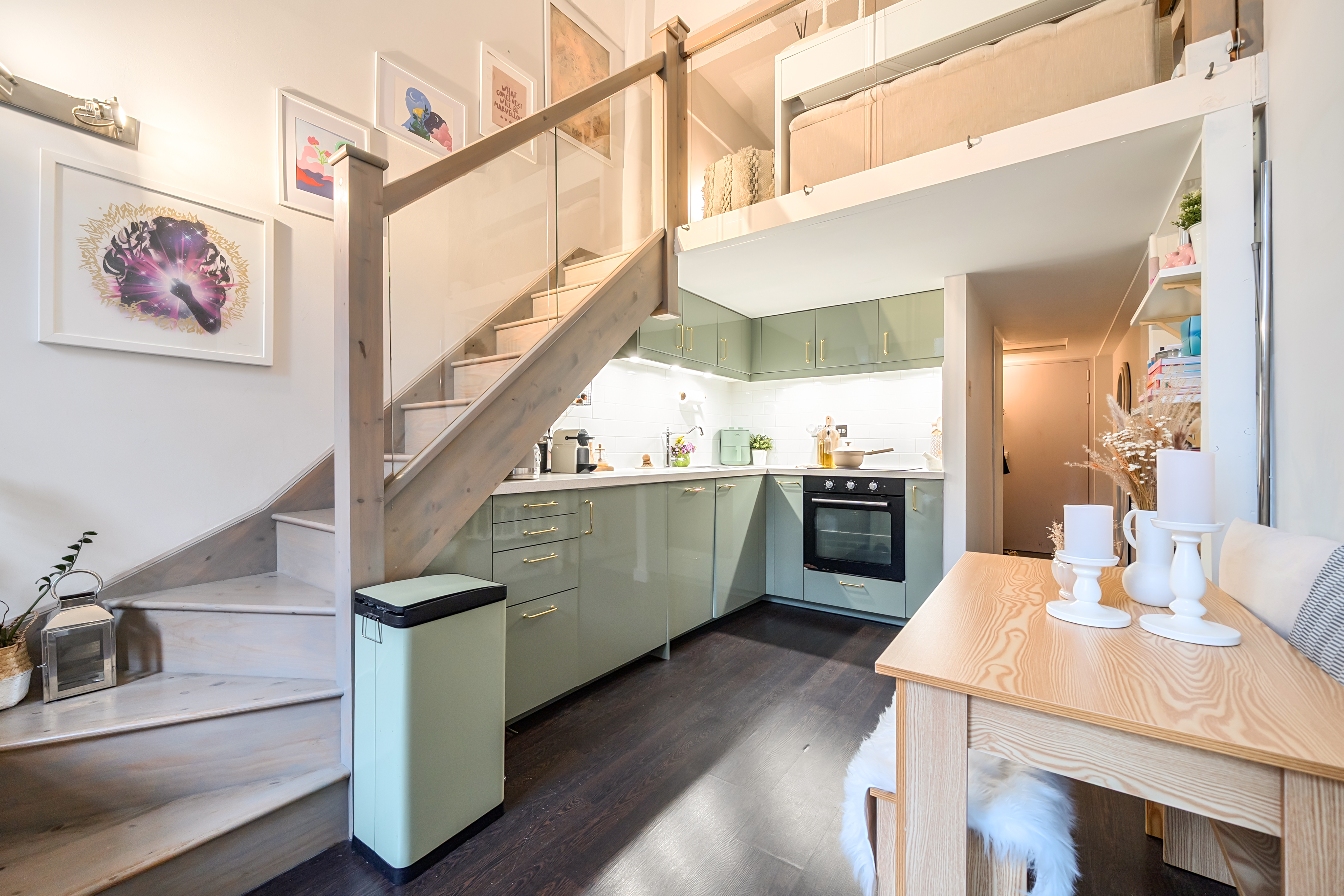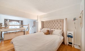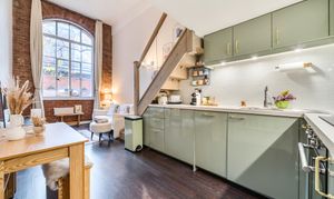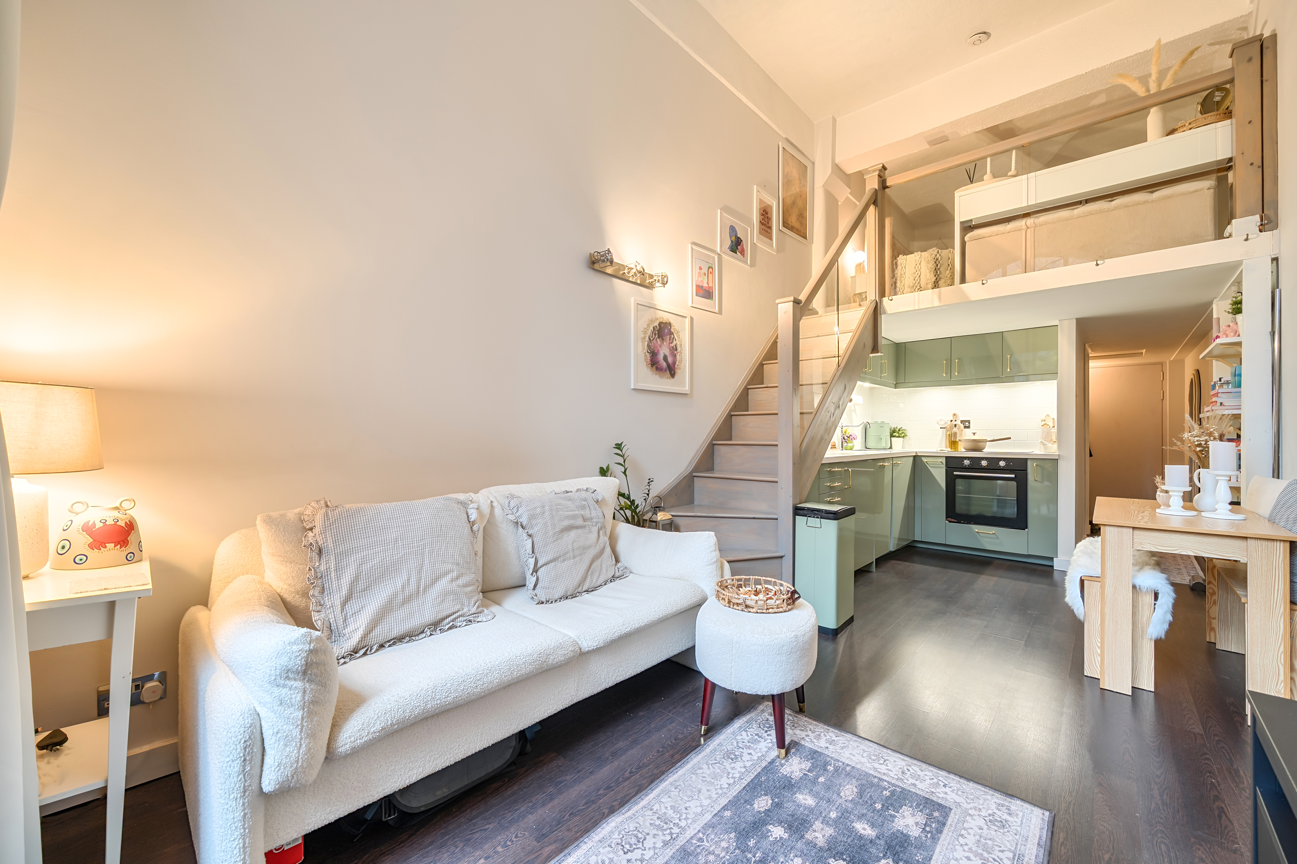 This impressive one bedroom factory conversion is located in the Historical and Grade II listed development of Bow Quarter. The accommodation briefly comprises of entrance hallway, modern fitted bathroom, modern kitchen area, open plan lounge and dining room. A modern staircase then leads to the upper floor mezzanine that includes a double bedroom, study area and storage. We strongly recommend internal viewing.