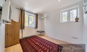 The property comprises kitchen/reception room on the ground floor which leads off on to the private front garden. The first floor offers two bedrooms with one being used as an additional reception space also accommodating a bathroom. The second floor then offers a third bedroom with ensuite.