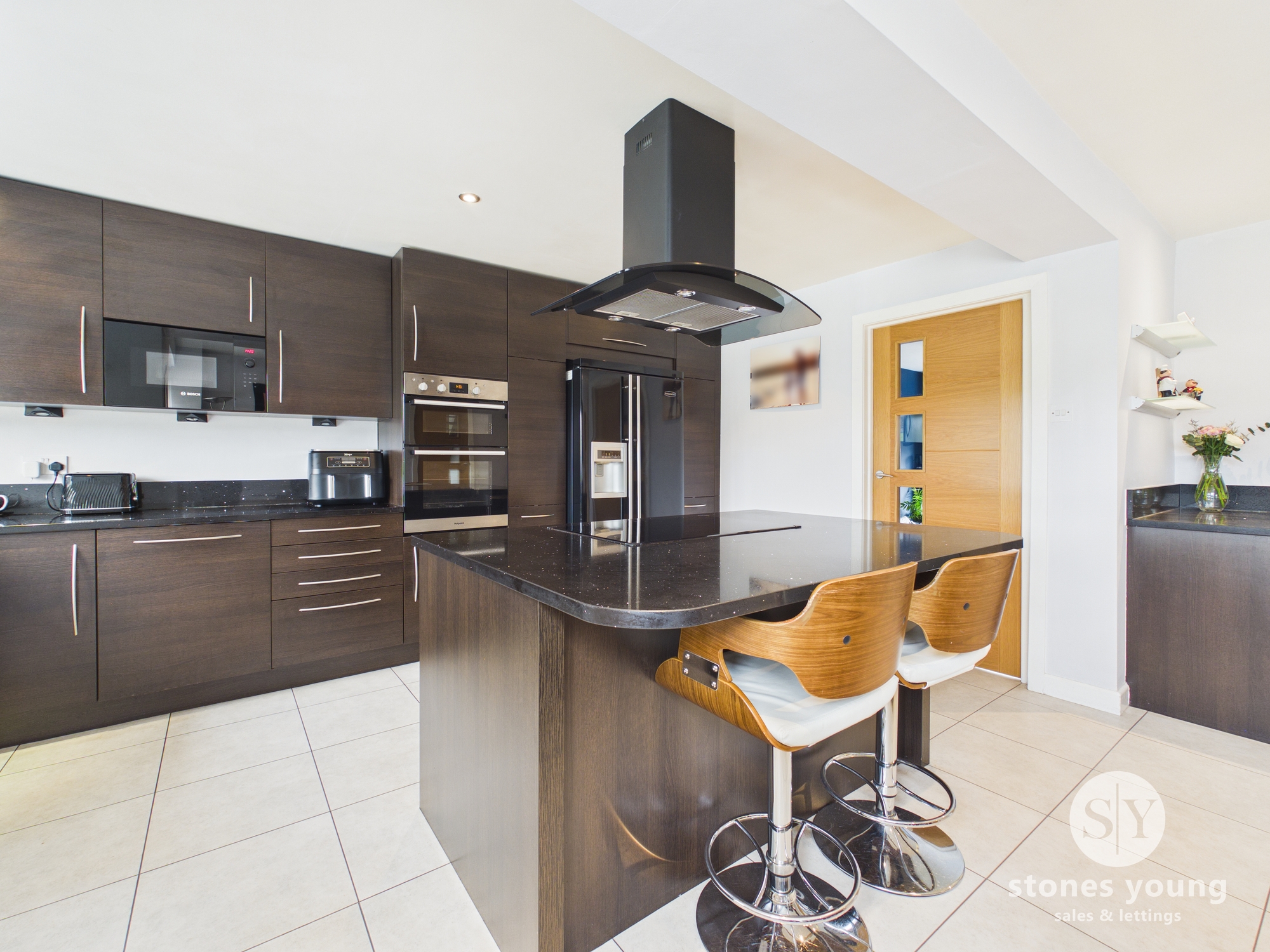 - Family Kitchen Diner with Quartz Worksurfaces and Island Featuring Breakfast Bar