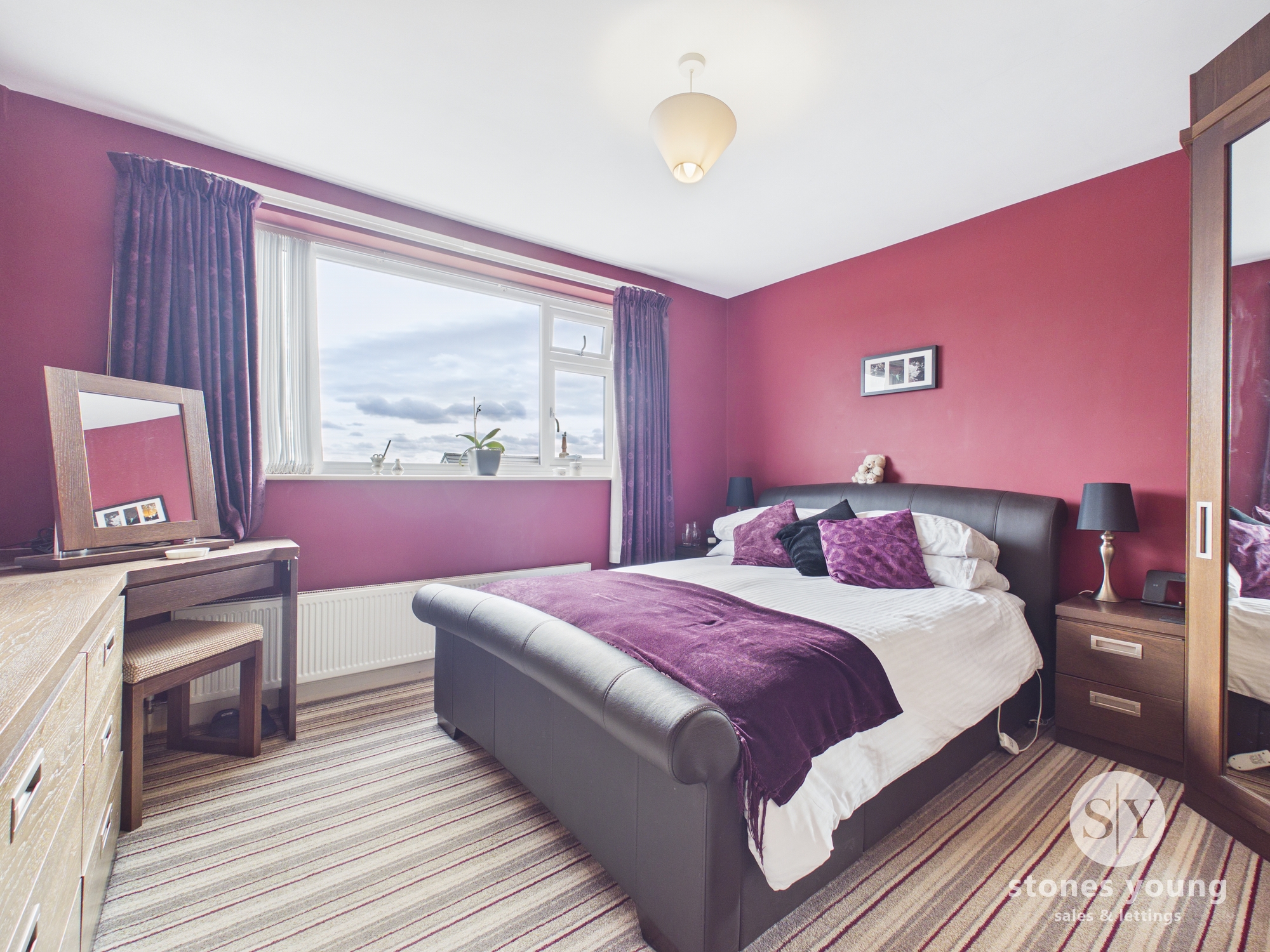Carpet flooring, fitted wardrobes and bedroom furniture, panel radiator, upvc double glazed window