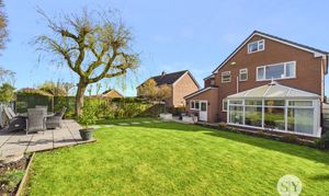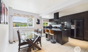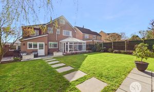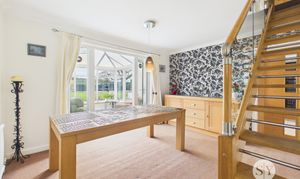 Step through the entrance porch into a welcoming central hallway that gives access to a spacious lounge, complete with a charming bay window that fills the room with natural light. The generous family kitchen diner, located at the rear of the home, features sleek quartz worksurfaces and an island with breakfast bar, making it a true heart of the home. Adjacent to the kitchen diner, a separate dining room provides flexibility for entertaining or further customisation to suit your needs. The conservatory, accessed via the dining room, offers a peaceful retreat and seamless connection to the rear garden. Additional ground floor highlights include a versatile snug (part of a garage conversion) that can serve as a play room or home office, a convenient downstairs WC, a practical utility room, and an integral garage for secure storage.