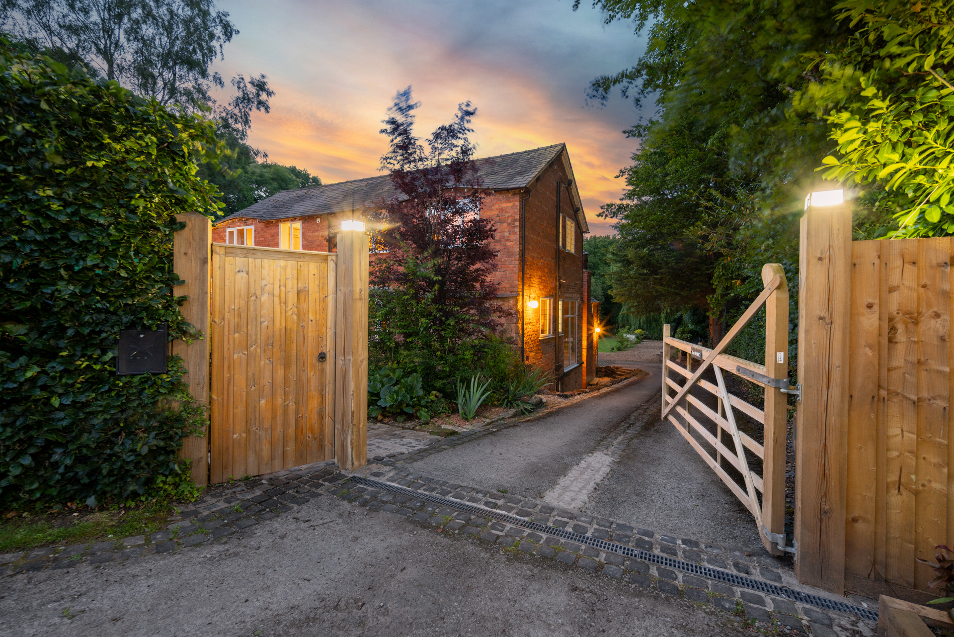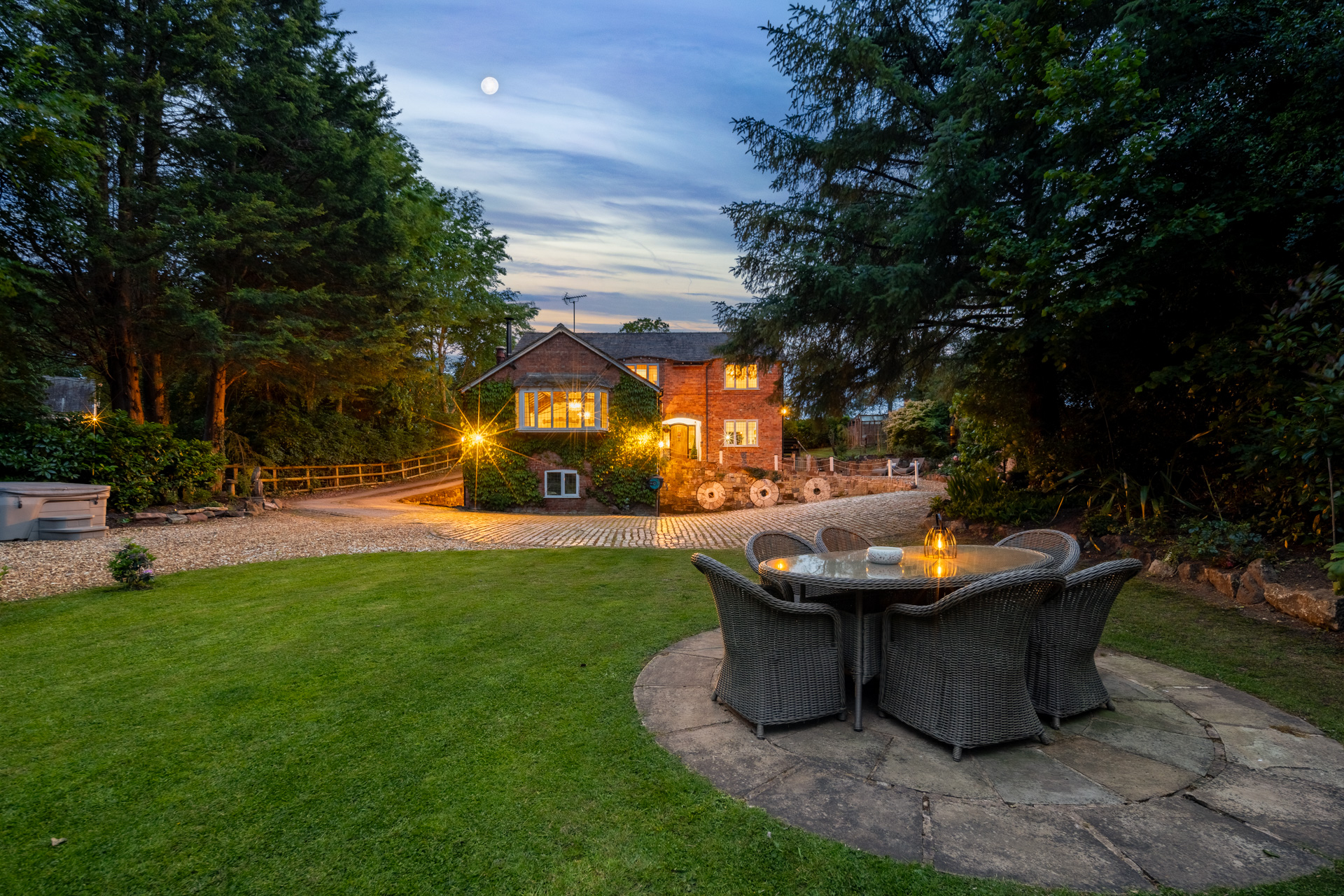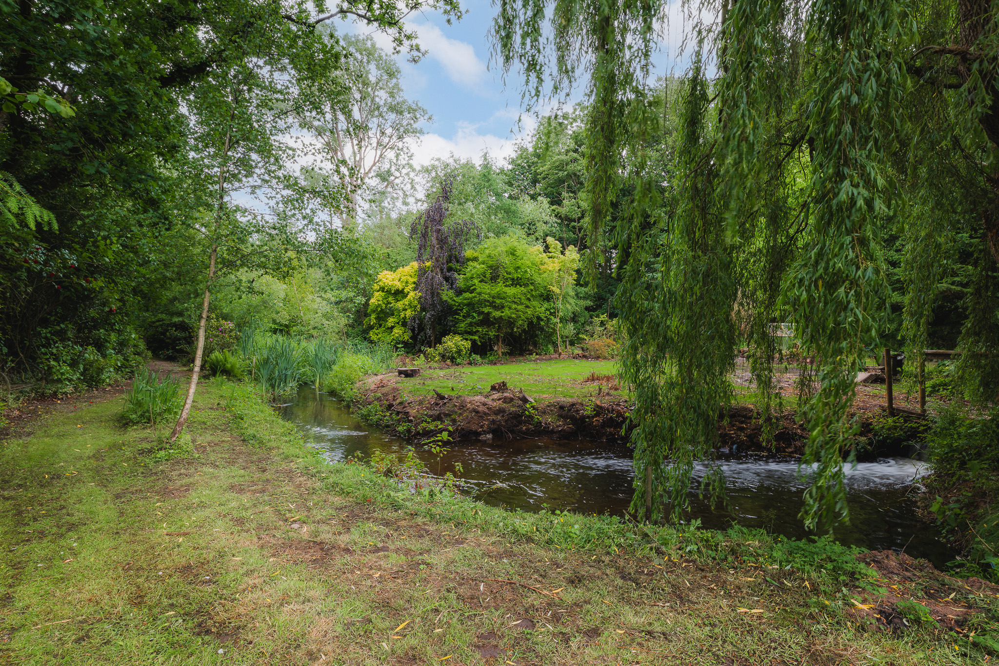 - Over 1 acre plot with a stream at the bottom of the garden
