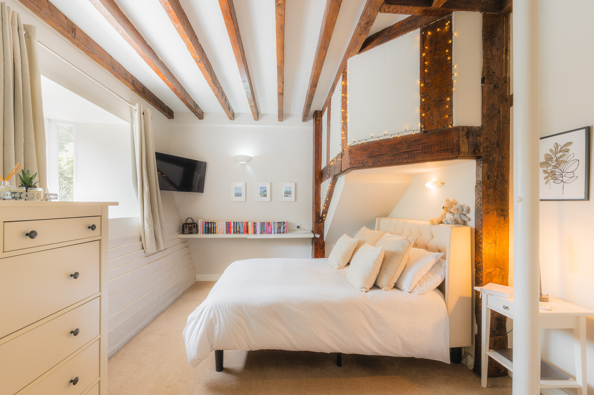 Emanating warmth and welcome, the recently installed Swedish Hwam wood burner is automated to regulate its own burn rate, gently heating the room on winter evenings.