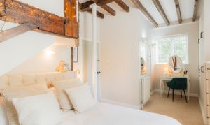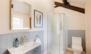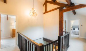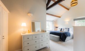 To the left of the stairs, the main bedroom is an oasis of calm. Superbly sized, there is space to breathe and relax, with a dressing area upon entry and abundant light courtesy of windows to two sides. Above, the vaulted ceiling adds an airy feel, whilst the shower room ensuite provides a place to refresh and rejuvenate.
