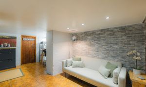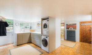 Joined by a generous utility room, fitted with handleless cabinetry for storage and stable door outdoor access, alongside a practical storeroom, the lower ground offers fantastic flexibility for use. With the potential (subject to planning) to convert the garage on this level, the lower floor could open up the possibility for a fully self-contained annexe or multi-use living space.