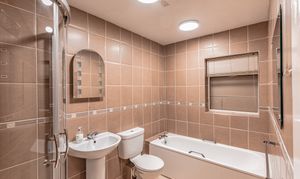 Nestled to the front and basking in rural views over the fields, discover the master bedroom. Spacious and light, there is ample room for a double bed and wardrobes. Serving the master bedroom, a separate bathroom contains a bath and free-standing shower, alongside WC and wash basin.