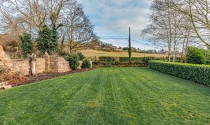 Completely private, stone steps lead down from the conservatory to an expanse of level lawn, perfect for entertaining and evenings filled with the laughter of family and friends.
