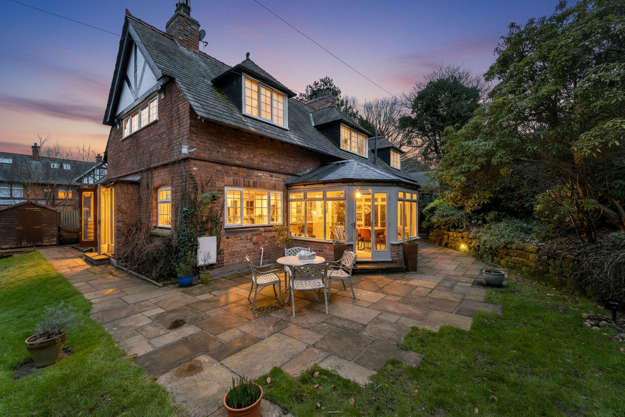 Tucked between open fields and the caverns and fairy caves beneath Cheshire’s Sandstone Ridge, Eversley Lodge sits on the rural fringe of the village and resonates with history. To the rear, a former golf course, now rewilded by the Woodland Trust, feels wonderfully untamed, yet within 20–25 minutes on foot, via a handy cut-through to Kingsley Road, Frodsham’s shops, cafés and restaurants come into easy reach.
