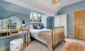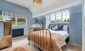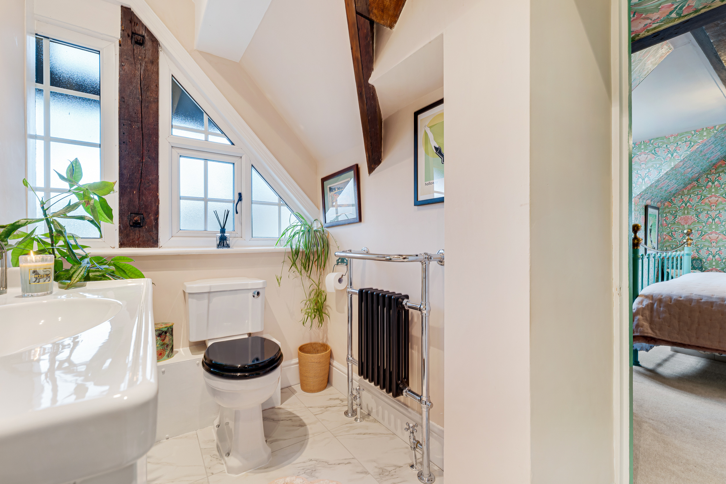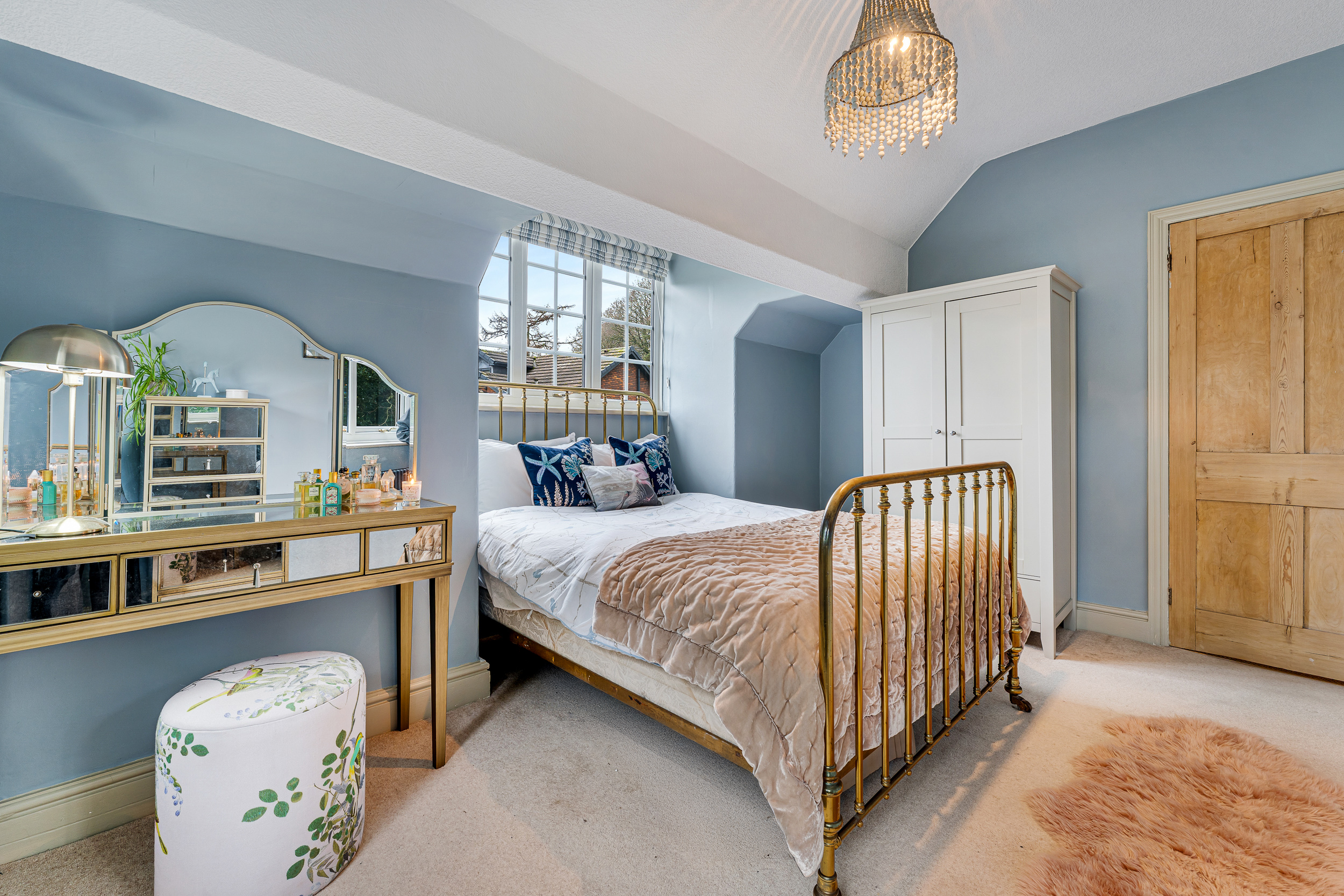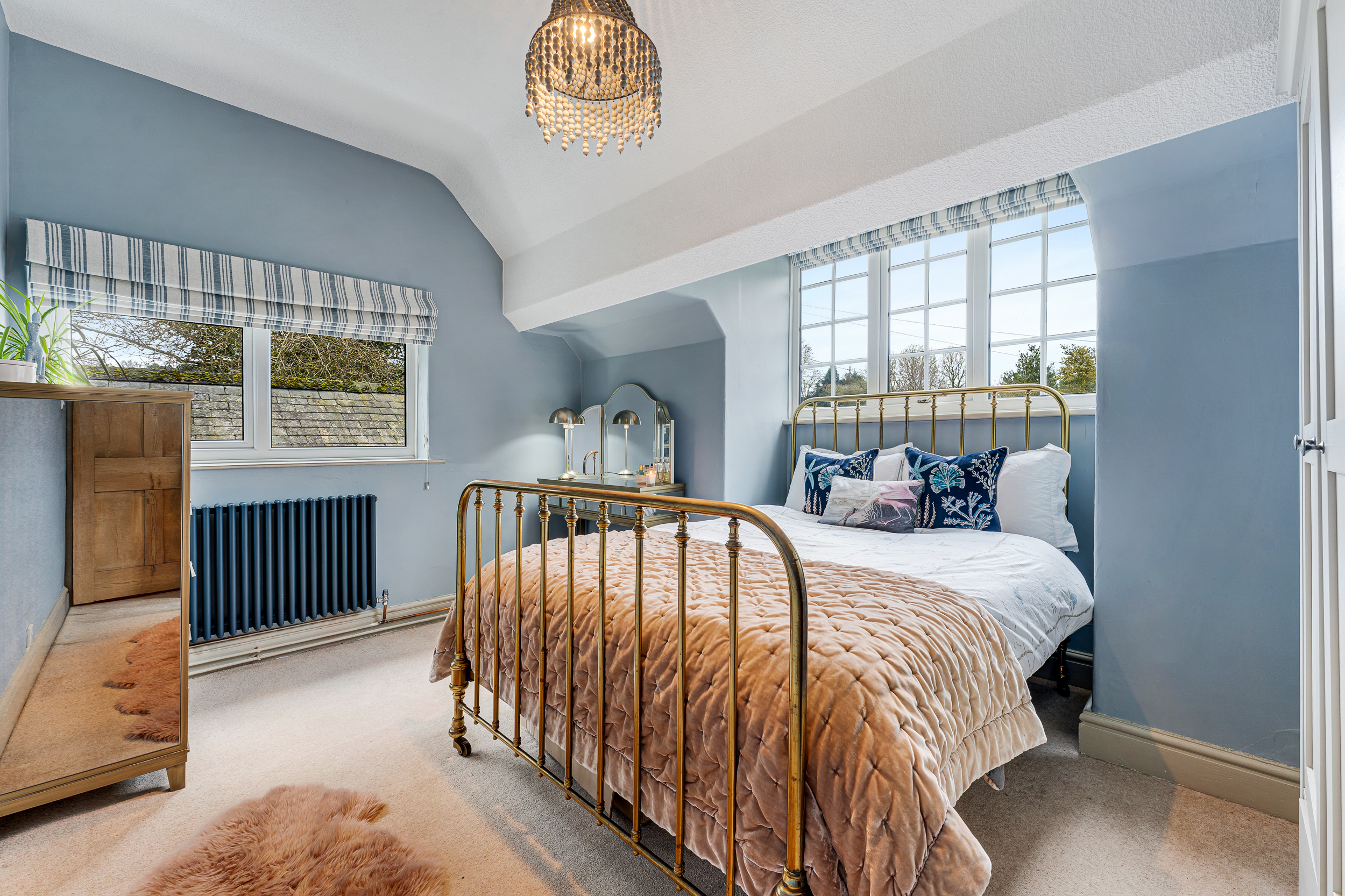 Along this landing, plenty of storage awaits in a large walk-in cupboard en route to the ‘blue bedroom’ where windows to two sides again ensure an influx of natural light. With plenty of space for a double bed, note the characterful cast iron style radiators, (the Hive heating control conveniently located in the hallway).