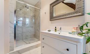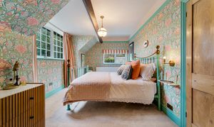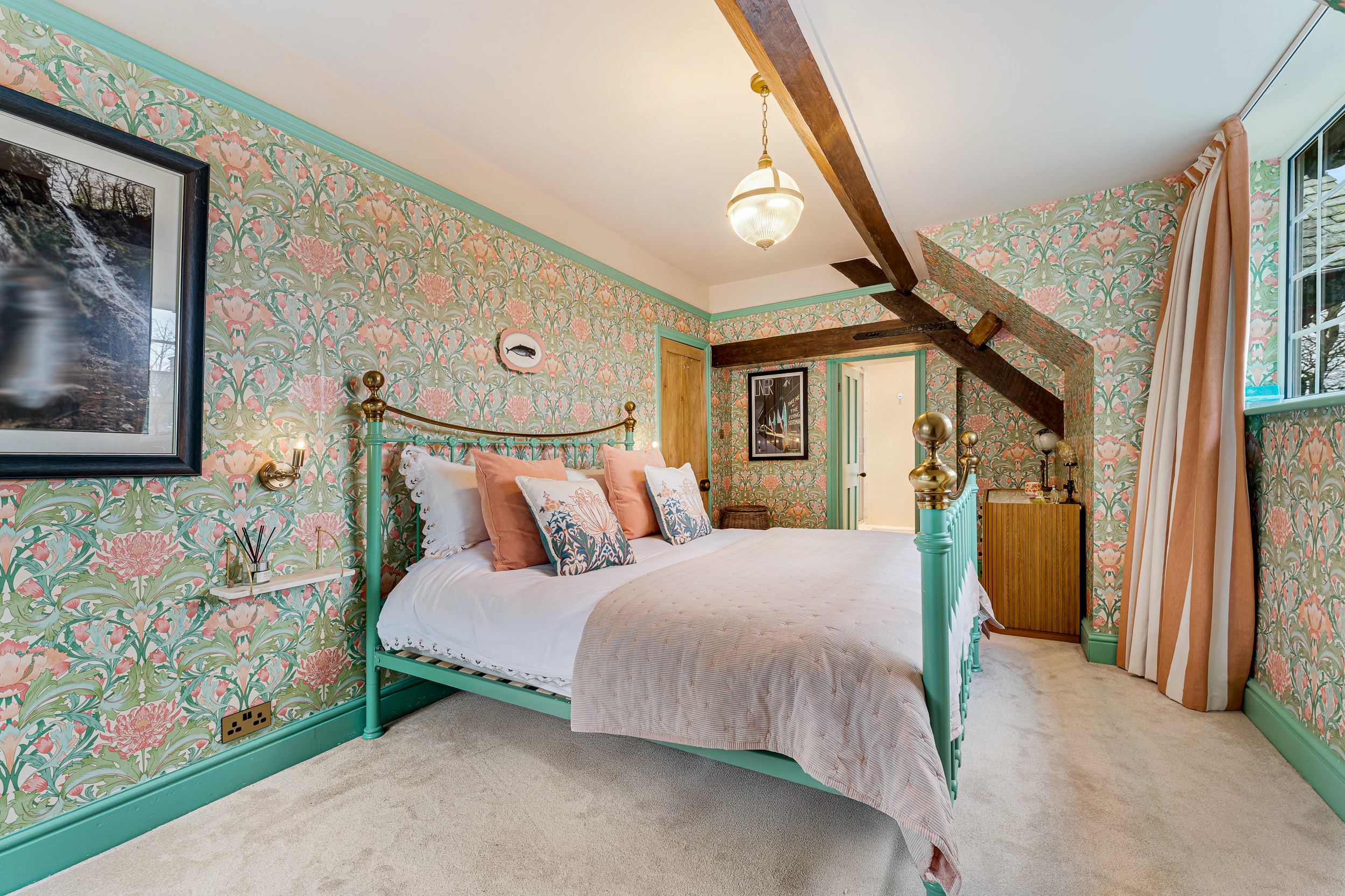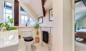 Flooded with light from its east-facing window, wake up to the gentle warmth of morning sunshine, while a side window frames views across neighbouring fields where sheep and horses graze. A recently finished en suite, fitted with classic Burlington sanitaryware, adds both comfort and period charm.