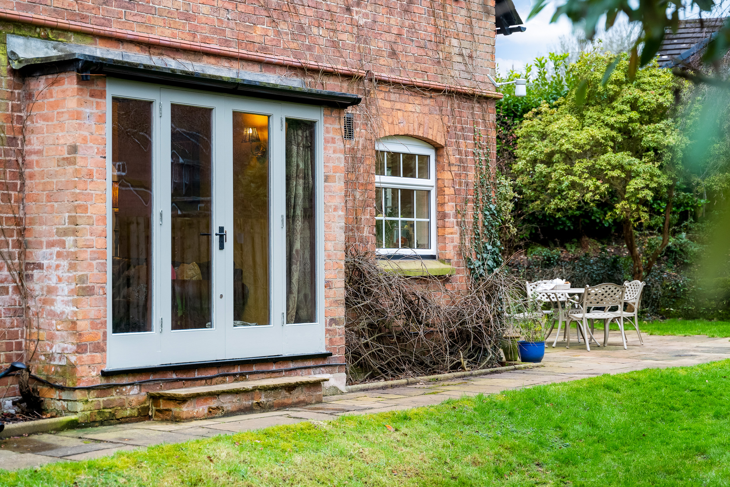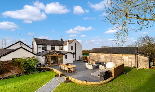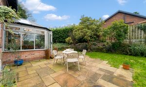 Outside, the garden has been landscaped by the current owners, reconfigured with the lawn extended to create a more usable space for families, balancing the large patio with plenty of soft greenery for children to play on.