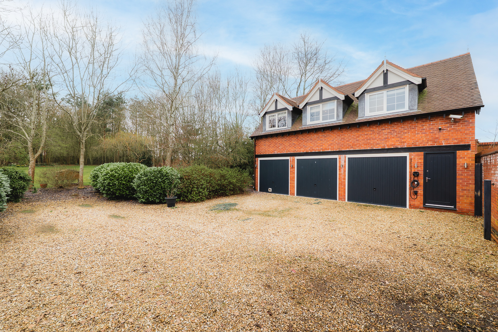 The flexibility extends further, with scope to adapt or expand, and potential for use as an Airbnb-style retreat, subject to any necessary consents. Below, the triple garage provides substantial storage and parking, complemented by an electric vehicle charging point.
