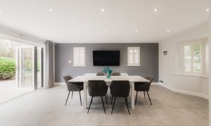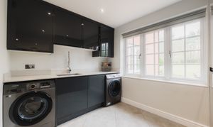 Recently refitted, the kitchen balances clean-lined design with all the essentials for day-to-day family living. The central island is a natural draw, doubling as both a place to prepare and to socialise as the chef cooks up a feast, with seating for six. Integrated appliances, including double ovens and an induction hob, sit seamlessly within the cabinetry, while space for an American-style fridge freezer, complete with plumbing for water and ice, is also available.