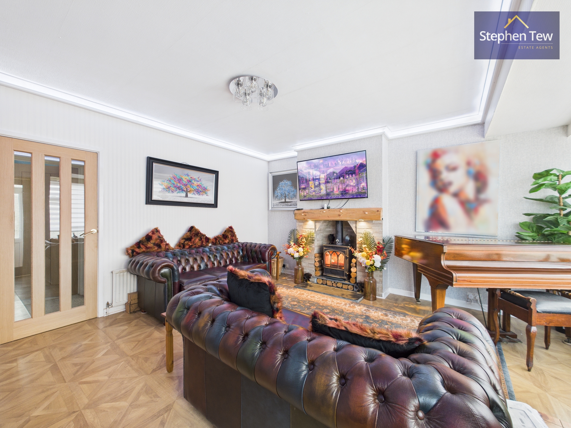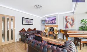 Upon entering, a welcoming entrance vestibule sets the tone for the rest of the home. The spacious lounge with a log burner provides a relaxing space for unwinding or entertaining guests, while the hallway seamlessly connects the various living areas of the property.