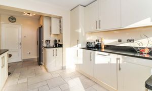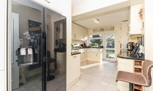 As you step inside, you are greeted by a welcoming entrance hall, leading you through to the dual-aspect living/dining room, measuring in excess of 30ft, perfect for entertaining guests or relaxing with family. The property boasts two bathrooms and a recently remodelled kitchen, which has been fitted in a classic shaker design with granite worktops, Butler style sink and a range of integrated appliances.