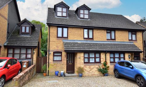 To the first floor are three further bedrooms, with the master boasting a further en-suite and fitted wardrobes. The family bathroom is fully tiled and fitted with a traditional suite. Externally, the rear garden is South-facing and is particularly secluded with separate patio and lawned areas, as well as a useful BBQ area. It also benefits from allocated parking, numerous visitors spaces and a garage.