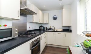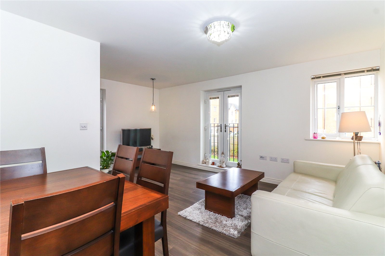 Immaculately presented two double bedroom, two bathroom first floor apartment built approximately 7 years ago on this attractive development. The current owners have maintained the flat beautifully and have added a number of additional features such as high quality fitted wardrobes to both bedrooms, and Amtico flooring. Another striking feature is the open views to the front over open playing fields and to the side, a lawned communal garden plus one allocated parking space.