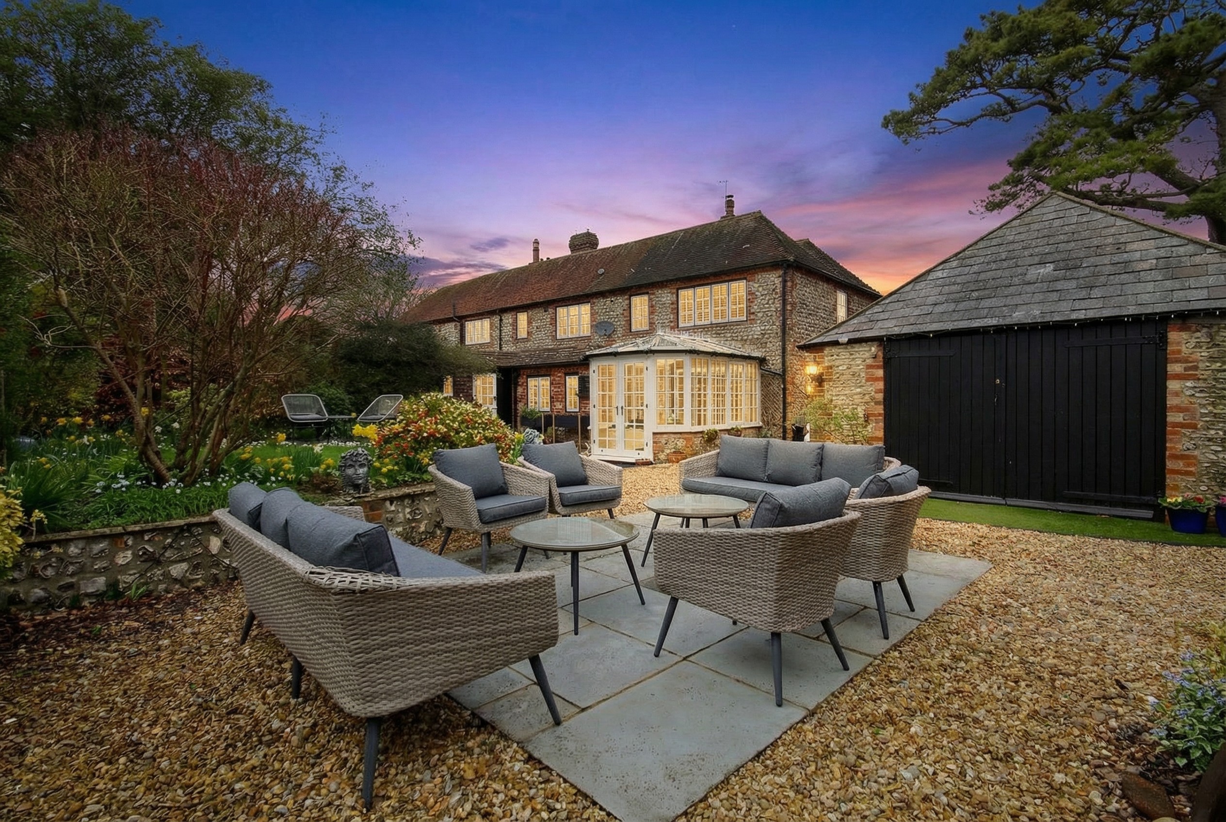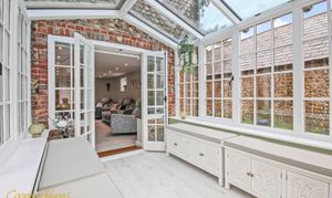 This Grade II listed home sits within Angmering’s conservation area and has been carefully updated while keeping the original structure and features intact.