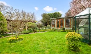 The garden runs to around 150 ft and faces south, with established planting and a path that leads through different seating areas. There is a magnolia tree, climbing plants, a greenhouse and a summer house that is insulated and heated, so it can be used all year.