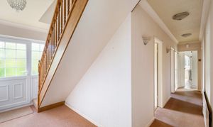 Upon entering, you are welcomed by an entrance porch leading into the kitchen and separate breakfast room—ideal for everyday family life. The well-designed layout flows through to a central hallway, providing access to all main rooms. The spacious living room features a bay-style window overlooking the expansive, enclosed rear garden, while a separate formal dining room is perfect for entertaining guests.
