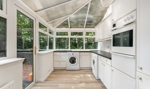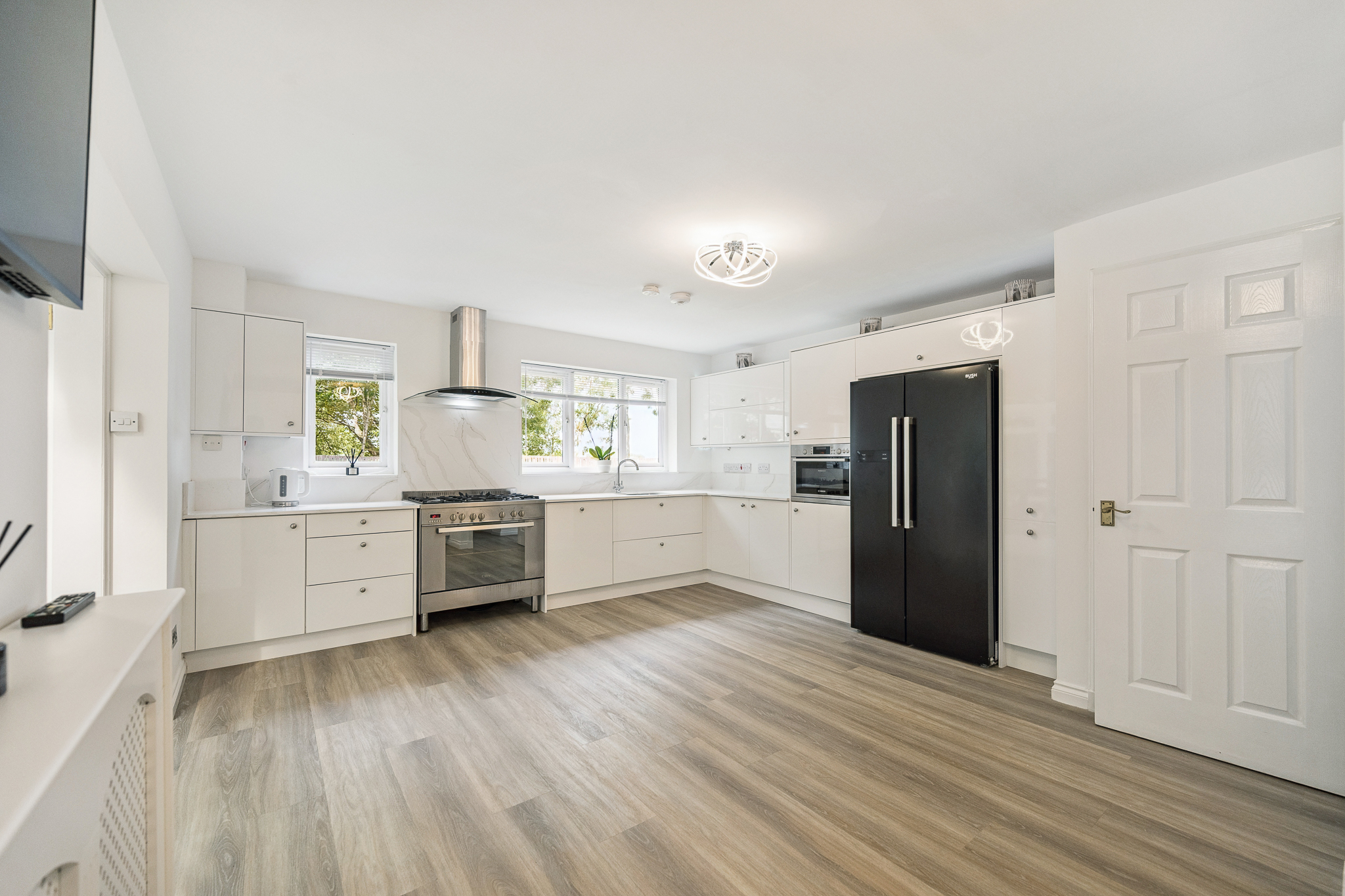 Back into the main hallway, a versatile fifth bedroom offers the ideal spot for a home office, playroom or guest suite. Continue through the home and the journey seamlessly flows into the heart of the property: a spacious, well-appointed vast kitchen finished beautifully with granite work tops and marble effect backsplash, opening directly into the bright conservatory-style dining room, allowing you to enjoy garden views and natural light from dawn to dusk. Completing the ground floor is the practical utility room with external access and a convenient WC ensure everyday functionality is as impressive as the style on show.